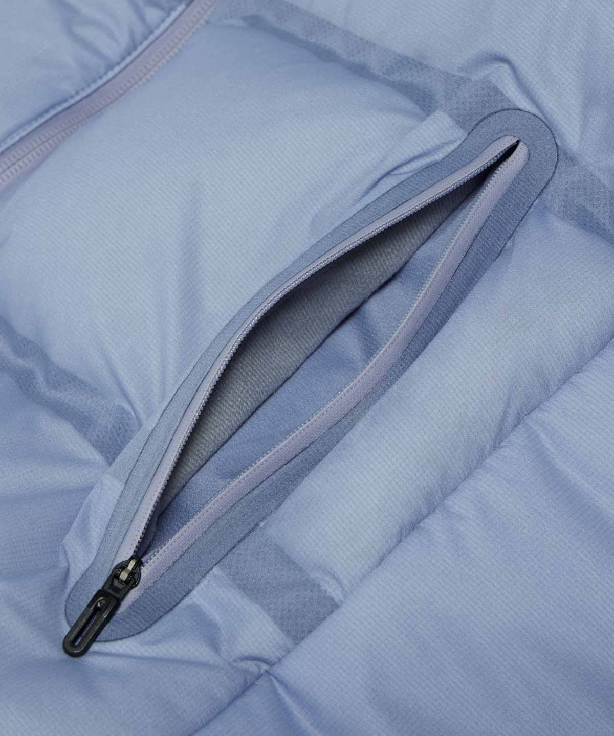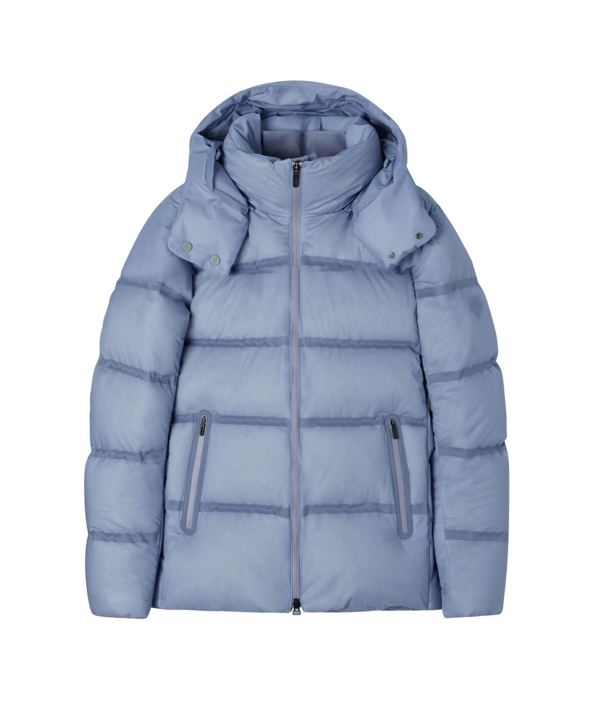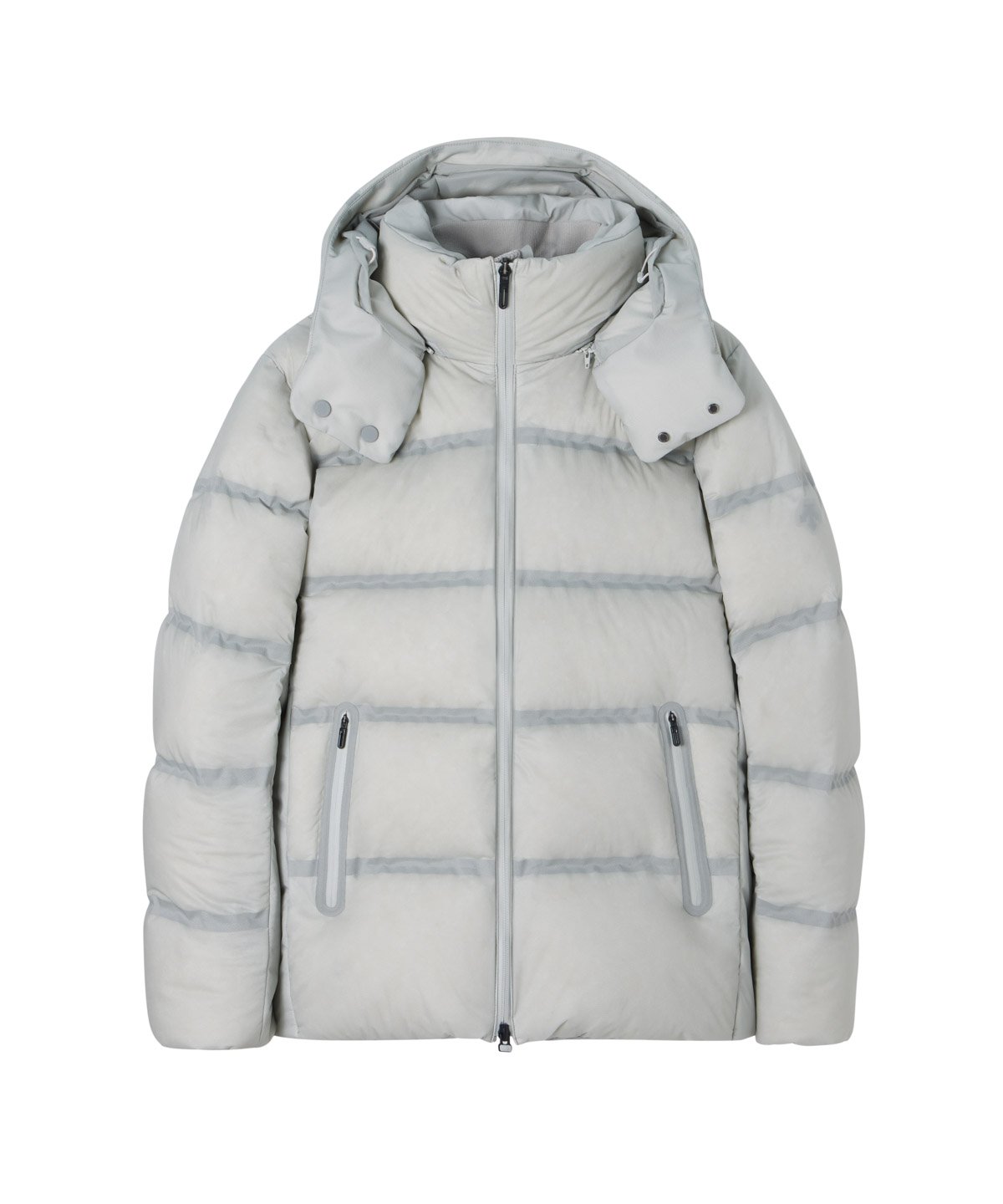水沢ダウンの、内側の設計までこだわり抜いた美しさを表現するため、表地は12デニールの透け感のある軽い、はっ水性を備えた生地を選定/透けても黒点が比較的少なく、綺麗に見える羽毛を採用し、随一の軽量性と嵩高性を発揮する1000FPのダウンを充填/さらなる保温性向上を目的として、裏地に使用している保温素材HEAT NAVI/ヒートナビにプリーツ加工を追加することで、光を熱へと変換し保温性能を発揮する素材の使用面積を増やし、その効果を促進/2列のジッパーとその間に配置されたメッシュ生地により、外気を取り込み、衣服内にこもりやすい不快な熱や湿気を逃がすことが可能/脇にはピットジップベンチレーションを配置し、同様に快適な衣服内環境を提供/「DOWNPASS」認証を取得したトレーサブルダウンを使用しシリアルナンバーによる厳正な管理を行うことで全ての羽毛の調達過程を追跡することが可能