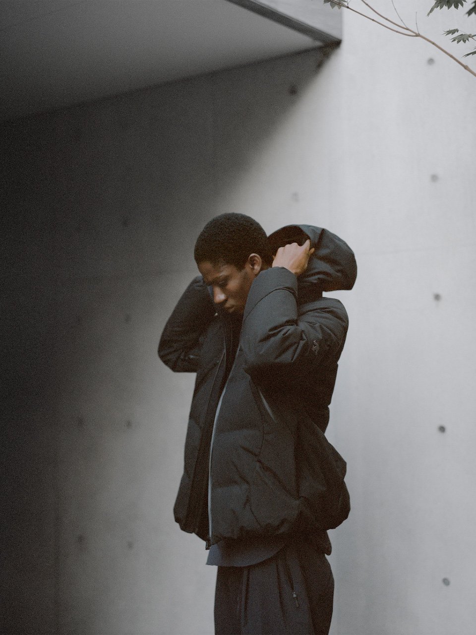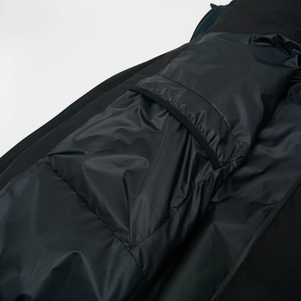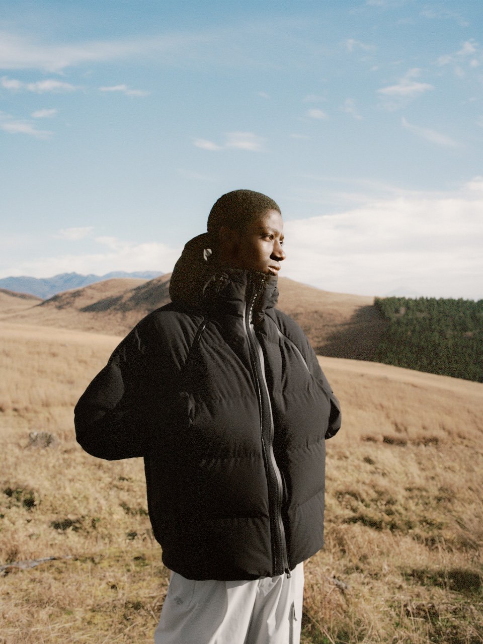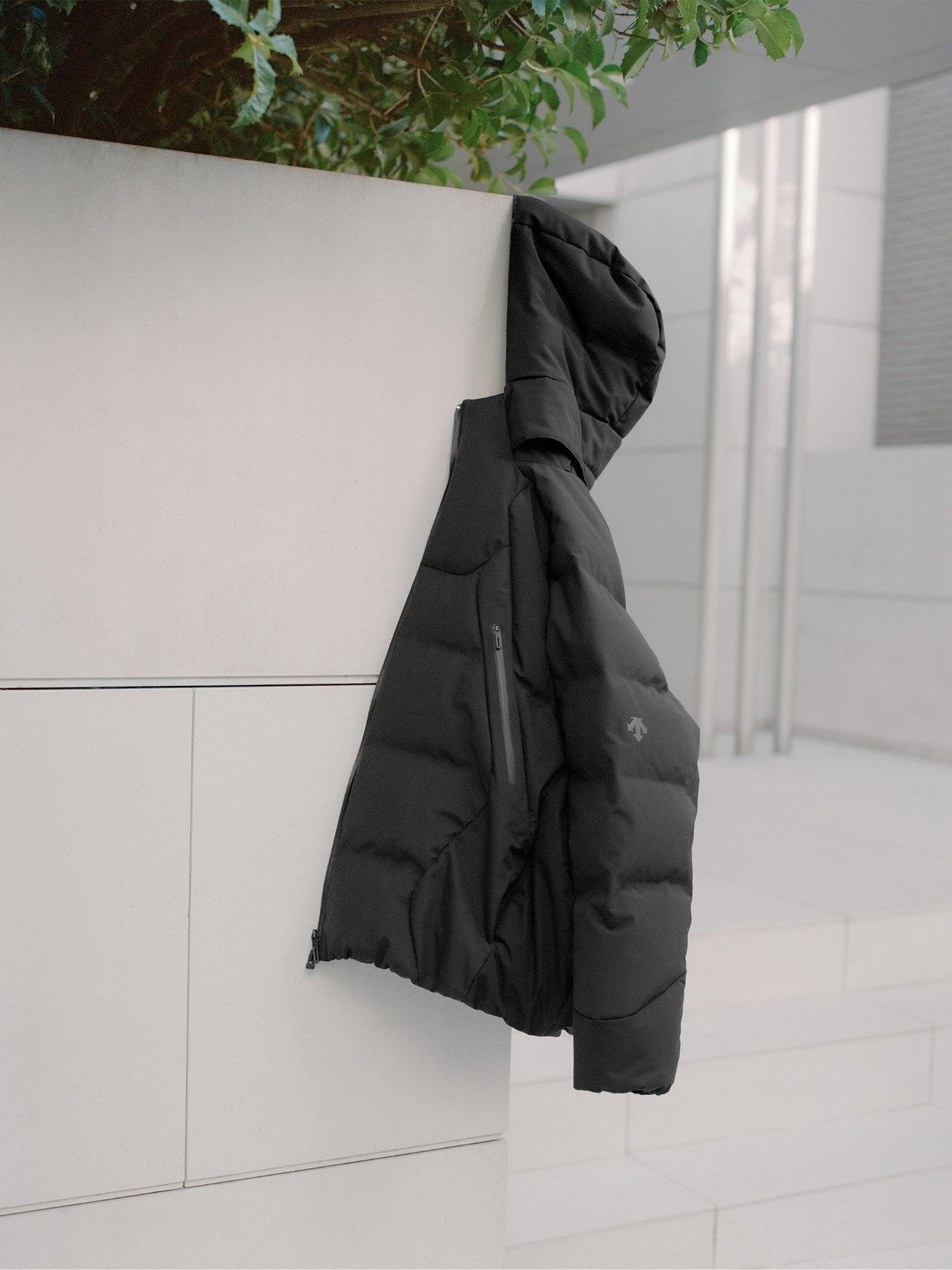 DESCENTE専用アプリウールを混紡した防水透湿素材を採用した、水沢ダウンジャケットの2025年新モデル。柔らかな風合いの17.5マイクロンの極細メリノウールをリサイクルポリエステルとミックスした 2レイヤー素材をベースに、ポケット周囲や脇下には化繊の布帛素材を配置。デザインエッセンスであるとともに摩耗に対する強度補完として機能するハイブリッド仕様。水沢ダウンジャケットのアイコニックモデル“マウンテニア”にインスパイアされたデザインで、身幅と袖にボリュームを持たせた丸みのある立体的なシルエットが特徴的。フードはファスナーで取り外しが可能なデタッチャブル仕様。マウンテニア同様、熱接着ノンキルト加工とシームテープ加工により耐水性を実現。また、フロントジッパー部分に採用されたデュアルジップベンチレーションは、2列のジッパーとその間に配置されたメッシュ生地により衣服内に外気を取り込み、ジャケット内にこもりやすい不快な熱や湿気を逃がすことが可能。そして裏地には保温素材HEAT NAVI®︎を使用し、衣服内を快適な温度にキープ。さらに「DOWNPASS」認証を取得したトレーサブルダウンを使用しシリアルナンバーによる厳正な管理を行うことで全ての羽毛の調達過程を追跡することが可能。