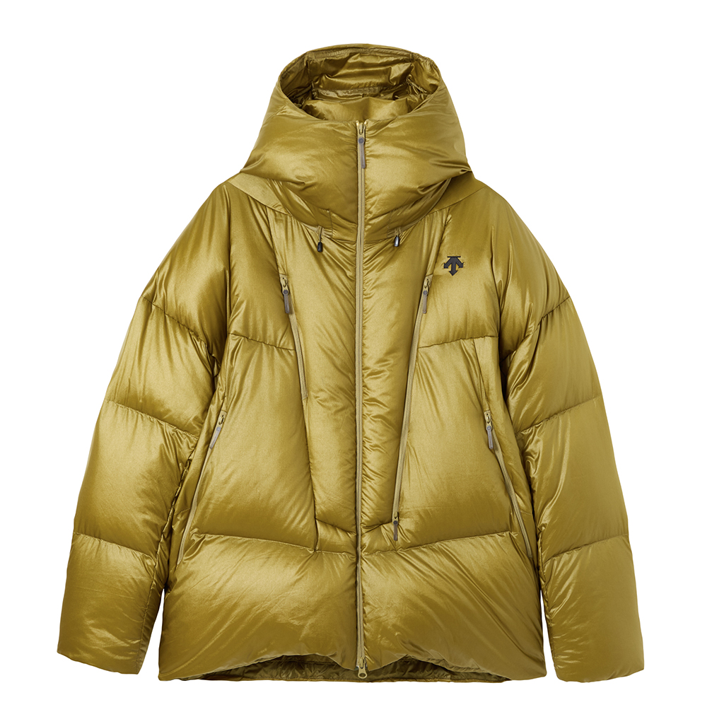 A down parka in a lightweight, supple, textured fabric insulated with water repellent 750 fill power down. The front closure has a full-length zipper, and there are four zippered pockets on the left and right front. Of these, the larger left chest pocket has additional compartments inside. Inner cuffs on the sleeves reduce wind entry, and rubber spindles and stoppers at the hem make adjustment easy. It comes with a stuff sack for portability. Suitable for extreme cold-weather conditions and a wide range of outdoor activities.