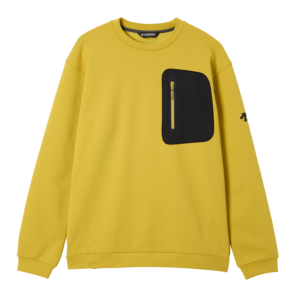 A crew neck pullover in a special fabric with a lattice-like construction on the inner surface and microfiber encapsulation for a soft skin touch and improved warmth retention. It has a bonded left chest pocket with a zipper. Suitable for both outdoor activities and casual wear.