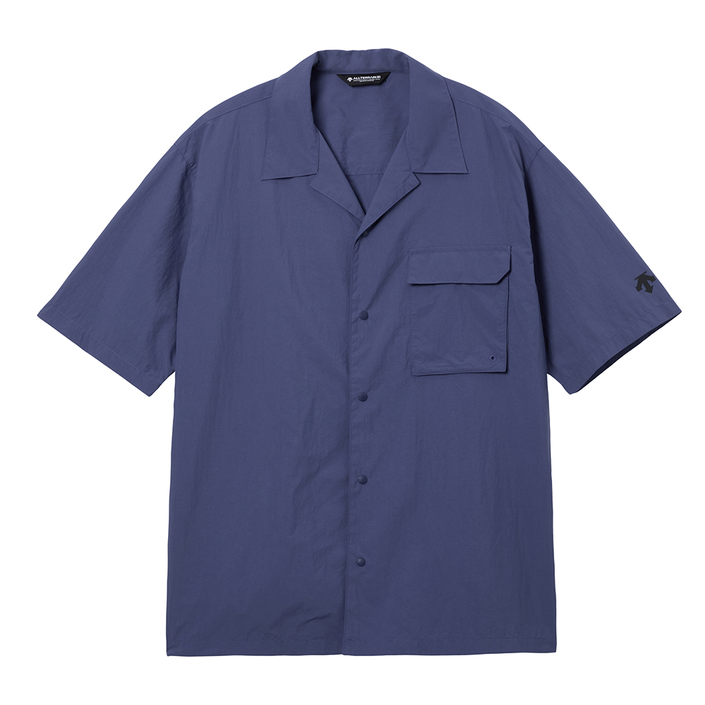 A lightweight short sleeve shirt in Taslan nylon. Water repellency is achieved with a CO treatment, free from decomposition-resistant fluorine compounds.The front has snap buttons and a gusseted patch pocket on the left chest for enhanced storage capacity. Suitable for both outdoor activities and everyday activewear.