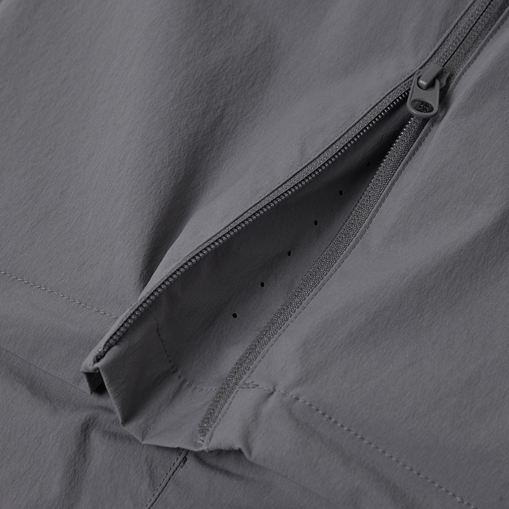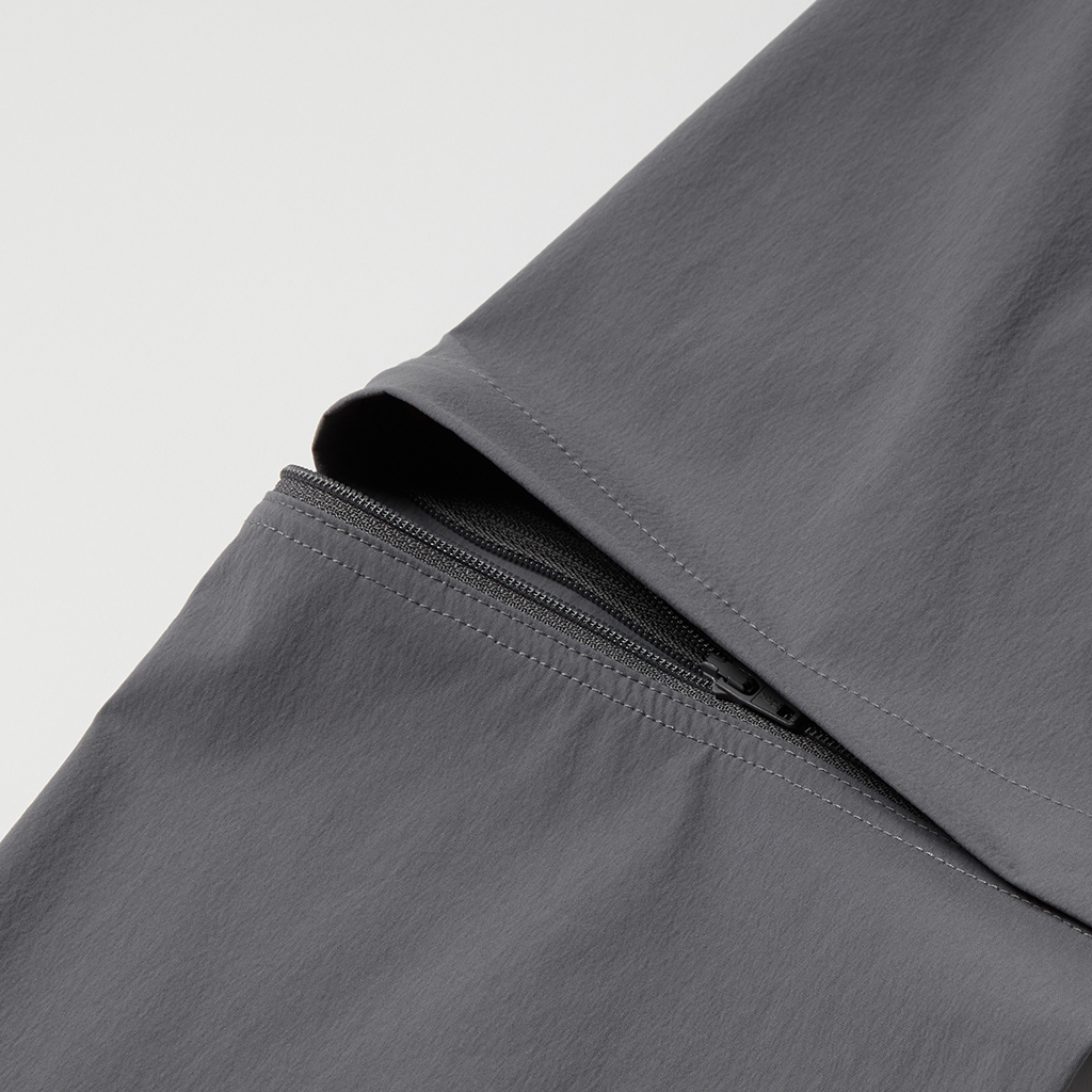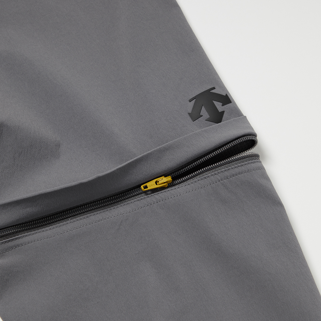 2-way pants in CORDURA? fabric developed by DuPont of the USA, featuring stretch for freedom of movement and some water repellency achieved with a CO treatment, free from decomposition-resistant fluorine compounds.The front closes with a button-and-zipper and a waist belt allows easy adjustment. Lower legs can be detached with zippers for conversion to shorts. Rubber spindles and stoppers at the lower hems allow easy pant width adjustment. Suitable for both outdoor activities and everyday wear.