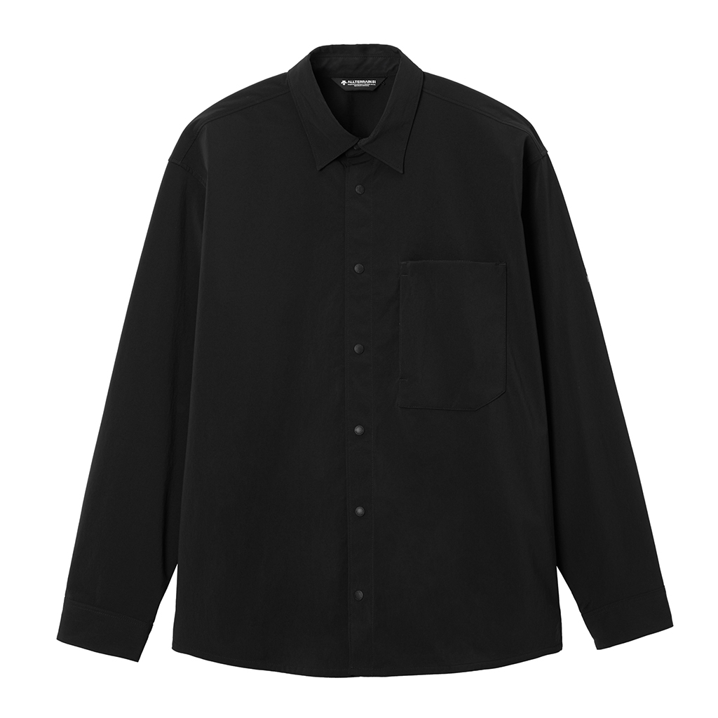 A long-sleeve shirt in CORDURA? developed by Dupont in the USA . It offers stretch for freedom of movement and moderate water repellency, which is achieved with a CO treatment, free from decomposition-resistant fluorine compounds. The front features a snap button closure. A patch pocket on the left chest has dual openings, on the top and inner vertical side, for convenient storage of small items. Suitable for a wide range of outdoor activities and everyday wear.