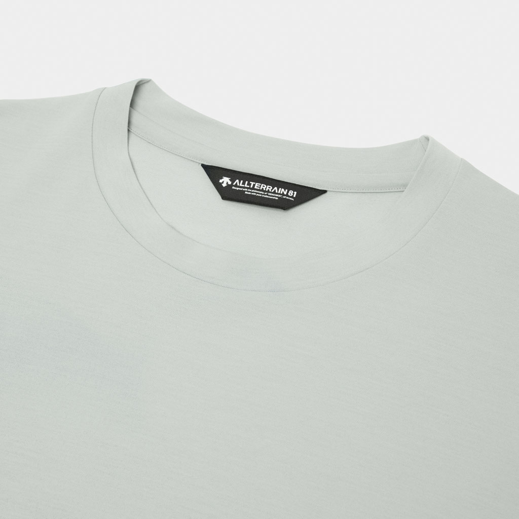 A functional halfsleeve Tshirt designed to combat summer heat with style in a woolpolyester blend fabric jointly developed by Descente and Toyobo for both durability and comfort, efficiently wicking sweat on active days. Most importantly it is equipped with SUNSCREEN technology that reduces skin temperature by up to 3? C for a cooling effect and blocks UV and burning infrared rays (NIR). Its slightly loose silhouette makes it perfect as a standalone or layering piece.Versatile for everything from urban to outdoor activities eliminating worries about sunburn or style. A new summer staple.