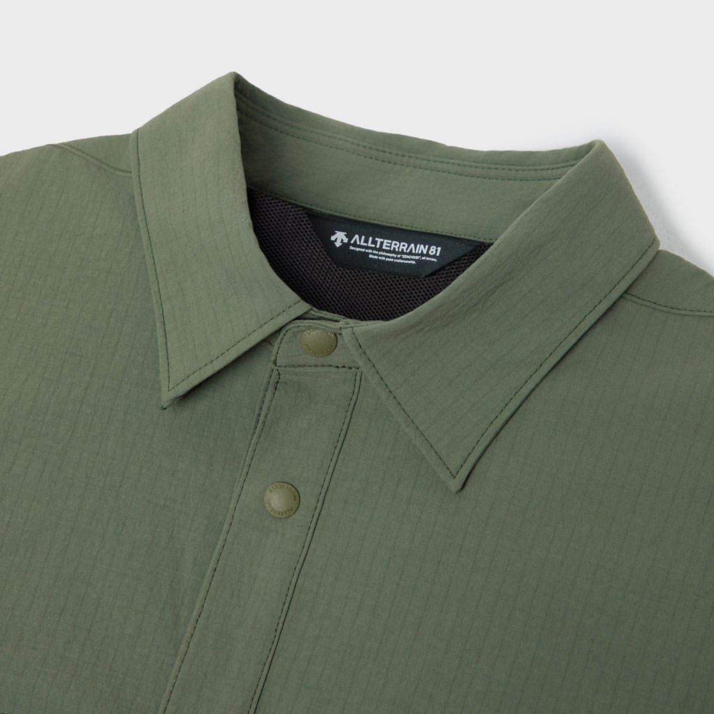 Crafted from durable CORDURA(R) fabric developed by DuPont, this long sleeve shirt offers excellent stretch to follow a wide range of movement, along with waterrepellent functionality that resists light rain. The waterrepellent finish is C0based, free from fluorochemicals that are resistant to environmental degradation, making it an ecoconscious choice.The front features snapbutton closures for easy on and off. Five pockets are positioned across the front for enhanced storage capacity. The large zippered pocket on the left side includes an internal compartment for organized storage.Side slits at the hem improve comfort and mobility during dynamic movements. With a slightly relaxed silhouette, this versatile shirt transitions seamlessly from outdoor activity to everyday wear.