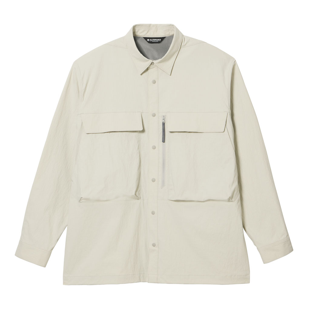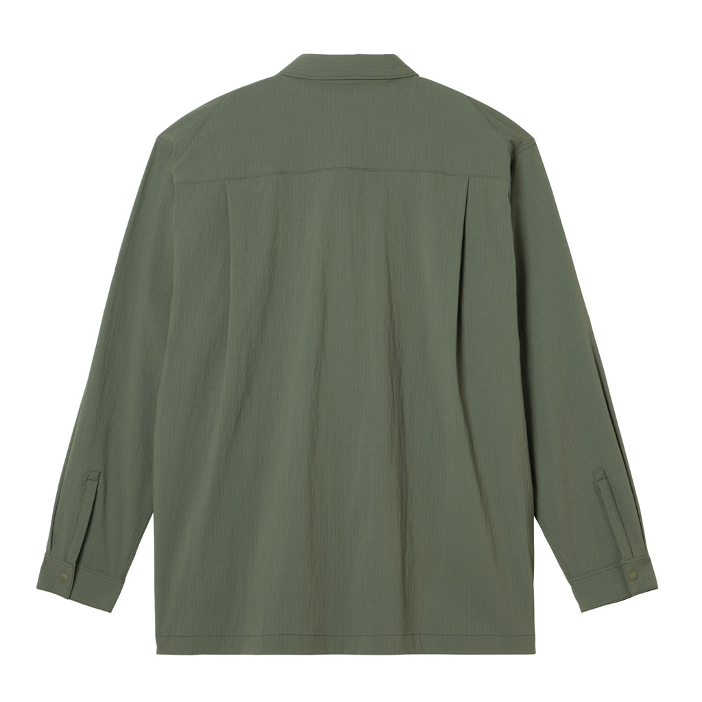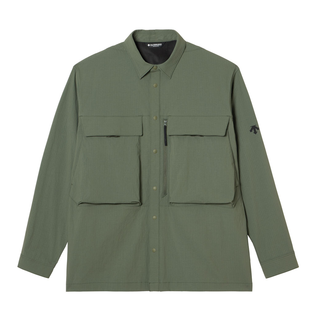 Crafted from durable CORDURA(R) fabric developed by DuPont, this long sleeve shirt offers excellent stretch to follow a wide range of movement, along with waterrepellent functionality that resists light rain. The waterrepellent finish is C0based, free from fluorochemicals that are resistant to environmental degradation, making it an ecoconscious choice.The front features snapbutton closures for easy on and off. Five pockets are positioned across the front for enhanced storage capacity. The large zippered pocket on the left side includes an internal compartment for organized storage.Side slits at the hem improve comfort and mobility during dynamic movements. With a slightly relaxed silhouette, this versatile shirt transitions seamlessly from outdoor activity to everyday wear.
