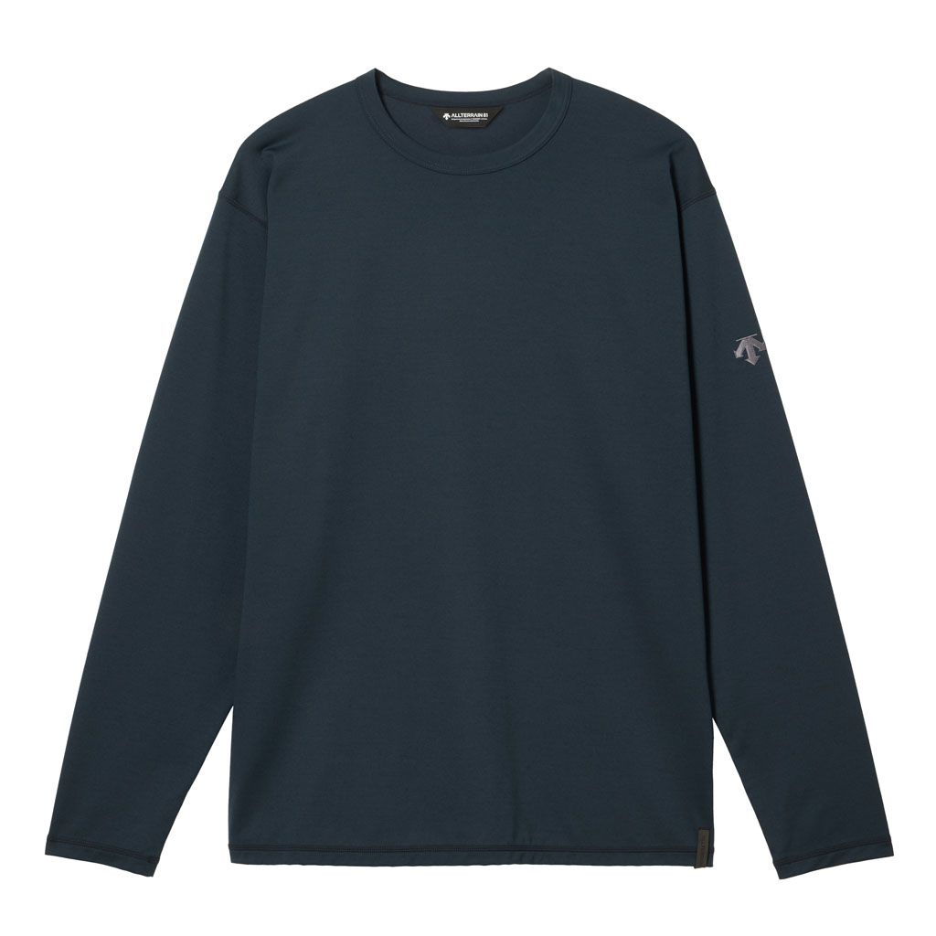 Functional cool gear for both urban and outdoor summer wear. A longsleeve Tshirt in a nextgeneration, heatcountering, woolpolyester blend fabric jointly developed by Descente and Toyobo for both durability and comfort, even in midsummer heat. It efficiently wicks sweat to keep you dry on active days. Equipped with SUNSCREEN technology that reduces skin temperature by up to minus3 drgree and blocks UV and burning infrared rays (NIR). It also features a contactcooling feel. A Tshirt that not only looks good, but also is super functional and its slightly loose silhouette makes it perfect as a standalone or layering piece.Versatile for everything from urban to outdoor activities.