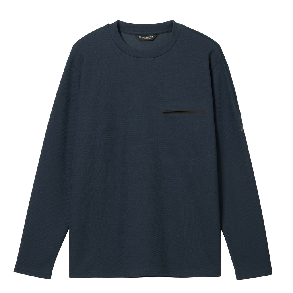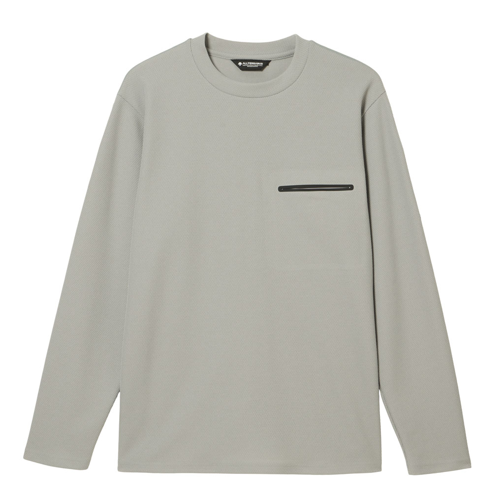 A longsleeve crewneck Tshirt in a mediumweight honeycomb fabric that offers quick wicking, quick drying and UV protection. It features an ultrasonic welded pocket on the left chest. Cuffs and hem are also ultrasonic welded for a seamless, minimal finish. A versatile piece for both outdoor and everyday use.