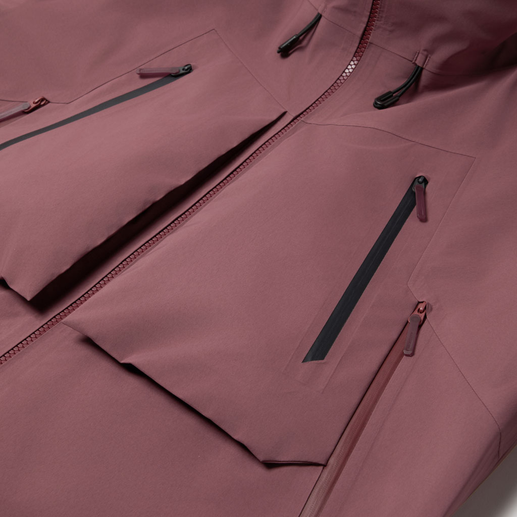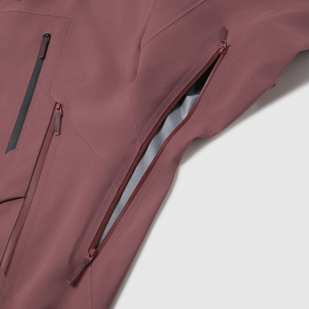 A shell jacket in GORETEX CKNIT TM, a waterresistant, breathable, and windproof material with a soft touch developed by W.L. Gore & Associates of the U.S., with its GUARANTEED TO KEEP YOU DRY(R) promise. The front has four zippered pockets and the two on the chest are gusseted to improve storage capacity. The cuffs have a onehand adjustment feature, allowing easy adjustment, even with gloves on. The hem is equipped with a Cohaesive TM cord lock system, for quick and easy size adjustment. A brushed tricot lining inside the collar enhances comfort. The generous silhouette accommodates thicker midlayer pieces and the gusset pattern design from the underarms to the sleeves prevents the hem from riding up when arms are raised, offering greater comfort during physical activities. Now in a reengineered pattern, it is lighter than previous models. Darts at the sides of the hood increase ear space and reduce stress during wear. With underarm pit zip ventilation, it is suitable for all seasons in a wide range of environments, from outdoor activities to daily use.