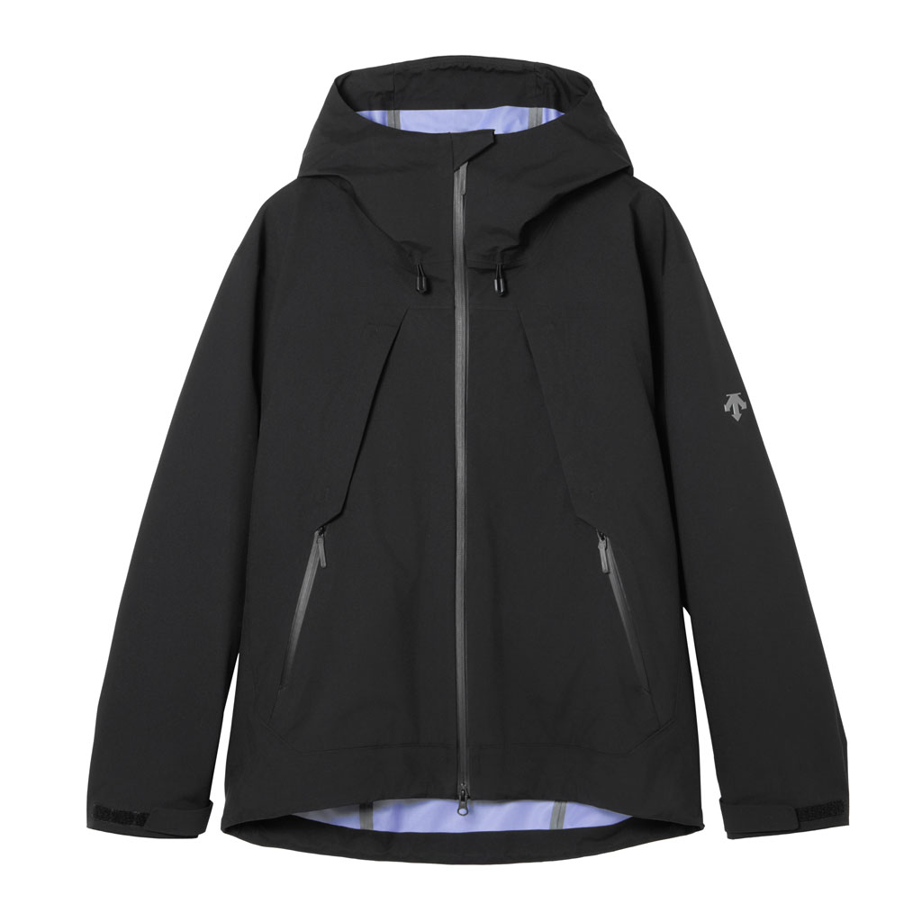 A shell jacket in waterproof, windproof and breathable 3L Dermizax(R). The tricot lining has been customdyed purple for visual appeal. It features Descente’s unique Dual Ventilation System with double raschel mesh between two parallel zippers to regulate internal temperature by allowing outside air in. The front has four zippered pockets with strategically placed double raschel mesh and lasercut holes to enhance breathability. On the back, laser vents and 3D spacer parts help air circulate and maintain comfort, especially when wearing a backpack. The hood is equipped with drawcords and stoppers. The cuffs have a onehand adjustment feature, allowing easy adjustment, even with gloves on. The hem is equipped with a Cohaesive TM cord lock system, for quicker and easier size adjustment than before. A brushed tricot lining inside the collar enhances comfort. The gusset pattern design from the underarms to the sleeves prevents the hem from riding up when arms are raised, offering greater comfort during physical activities. Equipped for allseason performance, from the city to the outdoors.