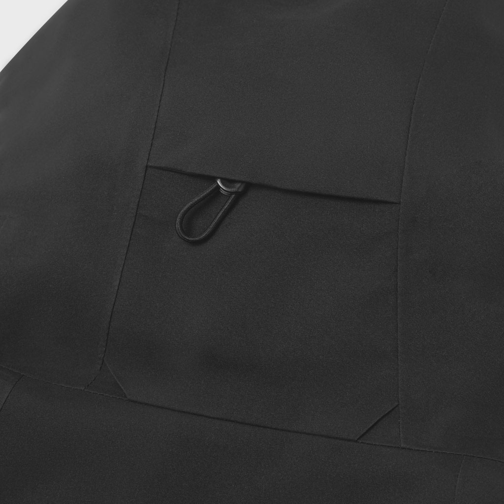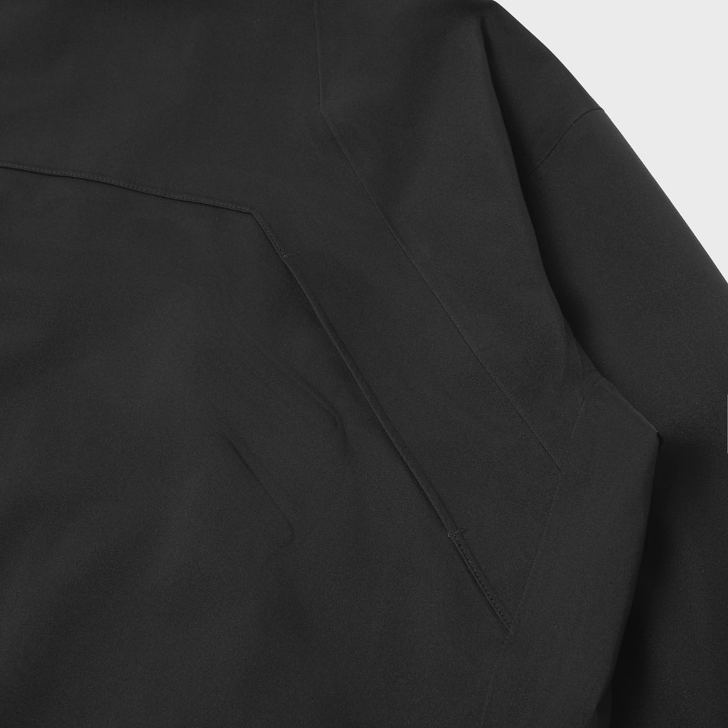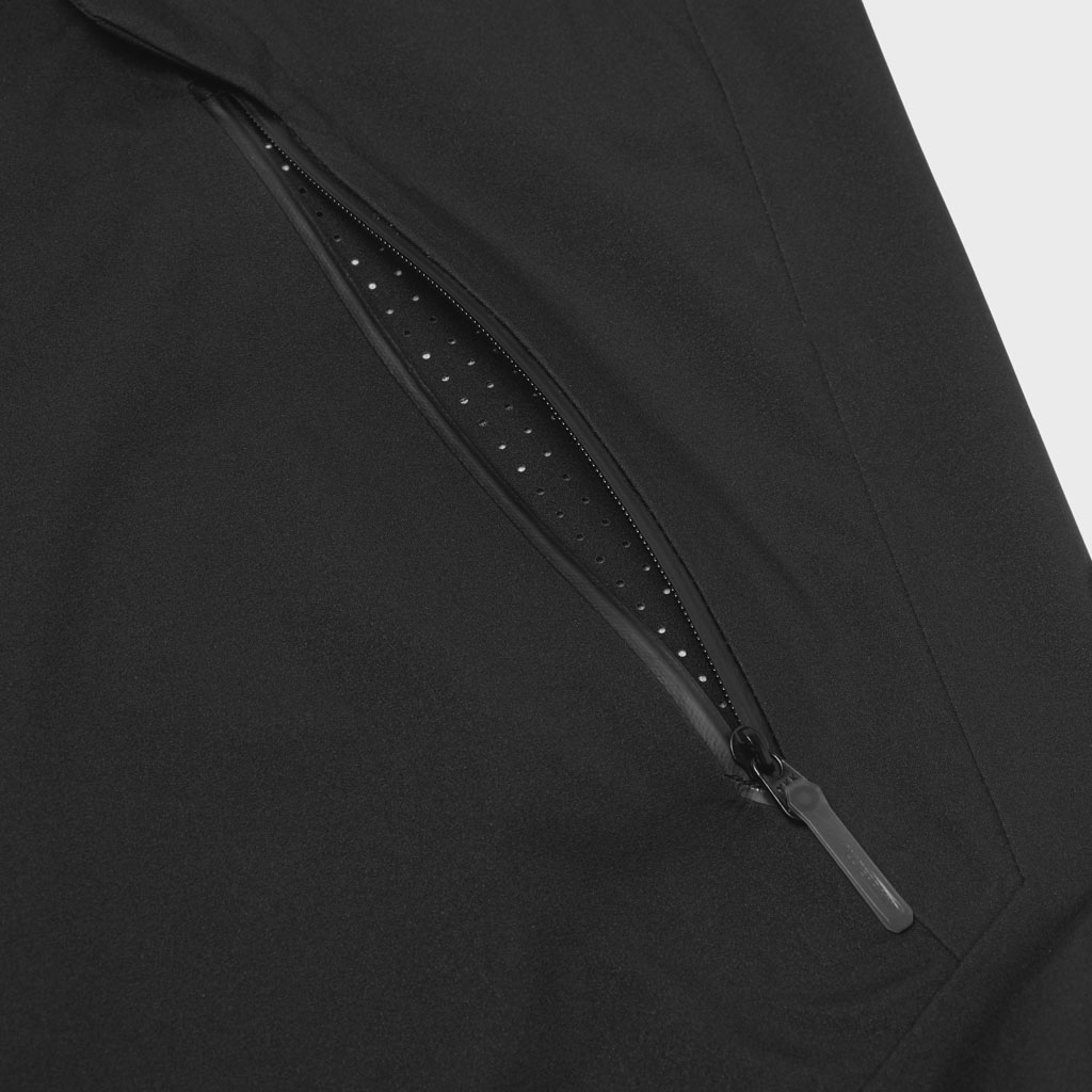 A shell jacket in waterproof, windproof and breathable 3L Dermizax(R). The tricot lining has been customdyed purple for visual appeal. It features Descente’s unique Dual Ventilation System with double raschel mesh between two parallel zippers to regulate internal temperature by allowing outside air in. The front has four zippered pockets with strategically placed double raschel mesh and lasercut holes to enhance breathability. On the back, laser vents and 3D spacer parts help air circulate and maintain comfort, especially when wearing a backpack. The hood is equipped with drawcords and stoppers. The cuffs have a onehand adjustment feature, allowing easy adjustment, even with gloves on. The hem is equipped with a Cohaesive TM cord lock system, for quicker and easier size adjustment than before. A brushed tricot lining inside the collar enhances comfort. The gusset pattern design from the underarms to the sleeves prevents the hem from riding up when arms are raised, offering greater comfort during physical activities. Equipped for allseason performance, from the city to the outdoors.