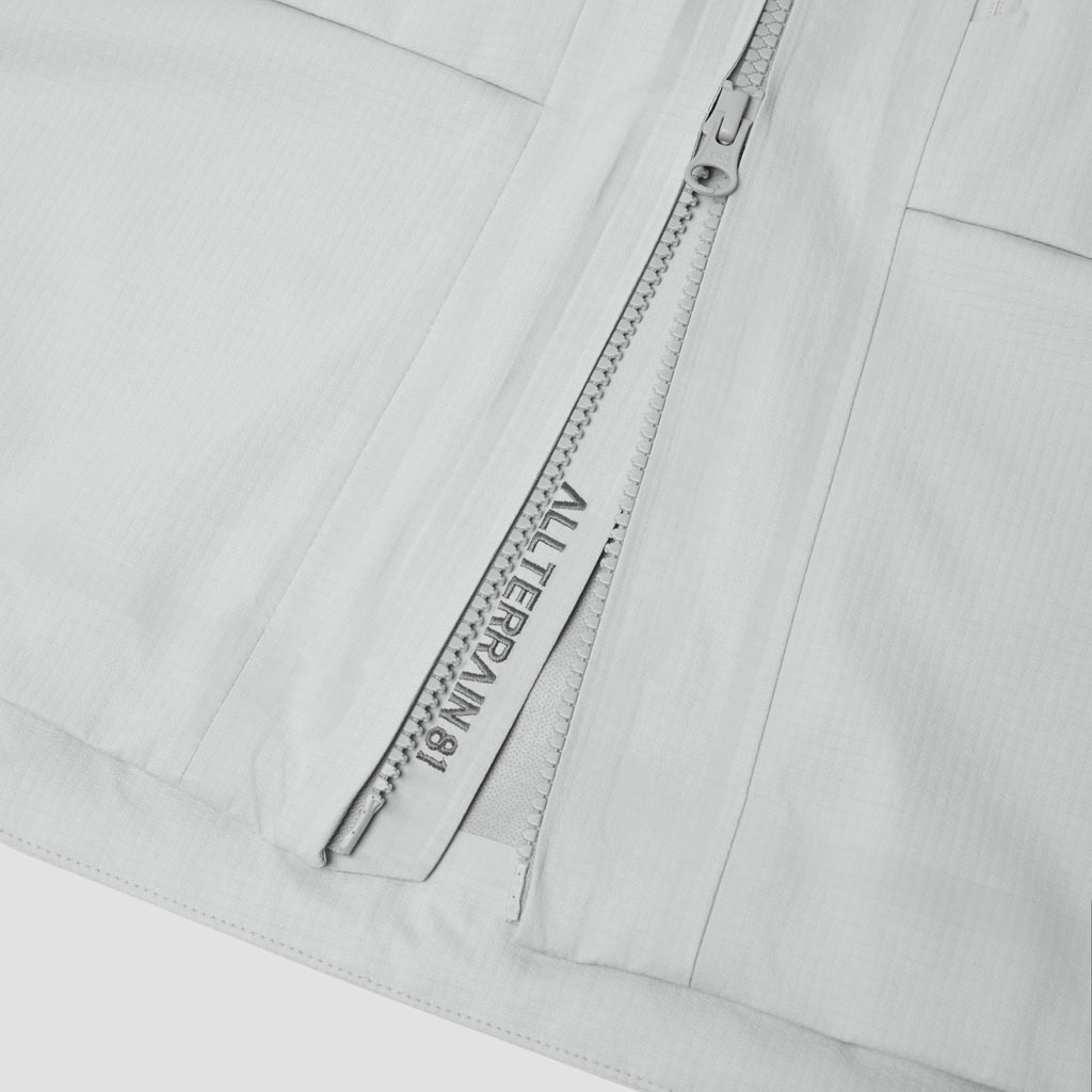 A 3L shell jacket with a 60gauge circular knit nylon lining made on a unique machine found only in Fukui, Japan. The fabric combines abrasion resistance with a premium feel, plus waterproof, breathable and windproof performance. The front has three zippered pockets, two of which are gusseted for added capacity. The centre pocket is lined with a soft brushed material ideal for storing sunglasses.