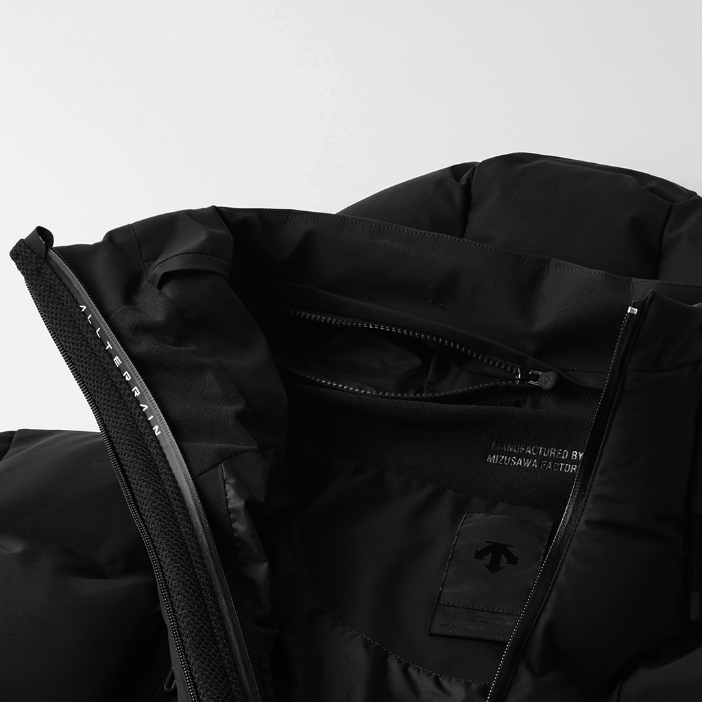 An oversized model of Mountaineer, the high-spec Mizusawa Down jacket with non-stitch, heat-bonded quilting and seam taping for high water resistance. The jacket is equipped with the inner chest pockets on both sides and a detachable key chain for more storage and convenience. It features a Parahood System ※1 for compact hood storage and prevention of water pooling on the hood in bad weather. The front Dual-Zip Ventilation System allows fresh outside air to enter the jacket through a mesh panel between the zippers to clear uncomfortable heat and humidity. The lining uses warmth-retaining HEAT NAVI? to keep the inside of the garment at a comfortable temperature. In addition, it uses DOWNPASS ※2 certified traceable down, enabling the tracking of the entire feather procurement process through serial numbers.※1 The Parahood System has a conveniently located Parazip to open and close the hood quickly and easily. ※2 DOWNPASS e.V (Germany) is a certification process guaranteeing down feathers are ethically sourced and come from tightly controlled and traceable supply chains, ensuring both animal protection and the maintenance of highest quality feather standards.