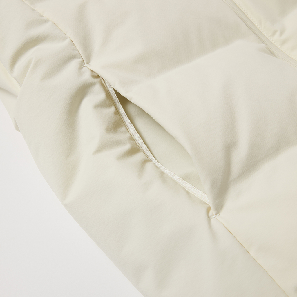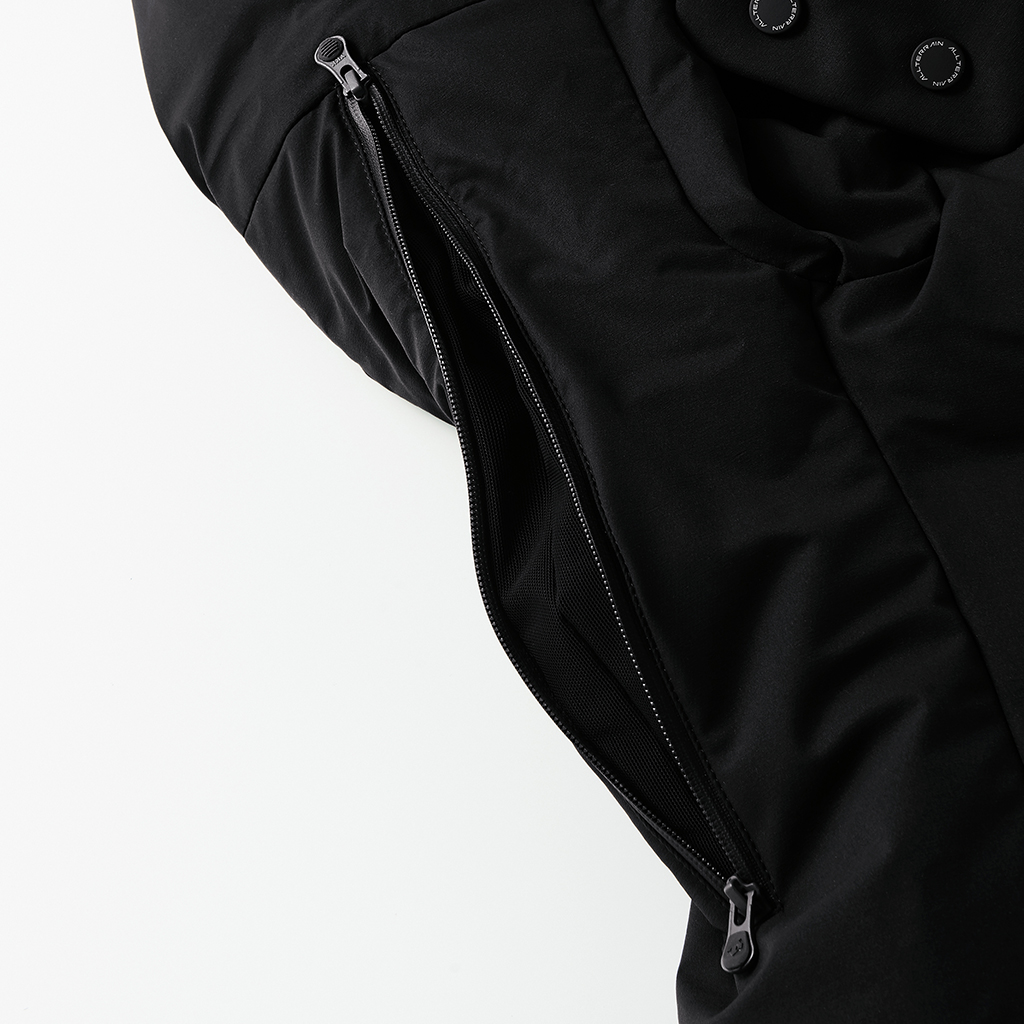 A half coat version of Mizusawa Down’s Anchor. The coat is equipped with the inner chest pockets on both sides and a detachable key chain for more storage and convenience. A thermal adhesive non-quilt process combined with seam taping prevents moisture entry and provides high water resistance. The dual-zip ventilation system on the front allows outside air to enter the garment through a mesh panel placed between two rows of zips, allowing any unpleasant heat and humidity to escape. The outer fabric is 4-way stretch DERMIZAX? MICRO STRETCH and the lining is HEAT NAVI?, which converts light into heat and provides active heat retention. The coat is insulated with DOWNPASS certified※1 traceable down which is strictly controlled by serial number.※1 DOWNPASS e.V (Germany) is a certification process guaranteeing down feathers are ethically sourced and come from tightly controlled and traceable supply chains, ensuring both animal protection and the maintenance of highest quality feather standards.