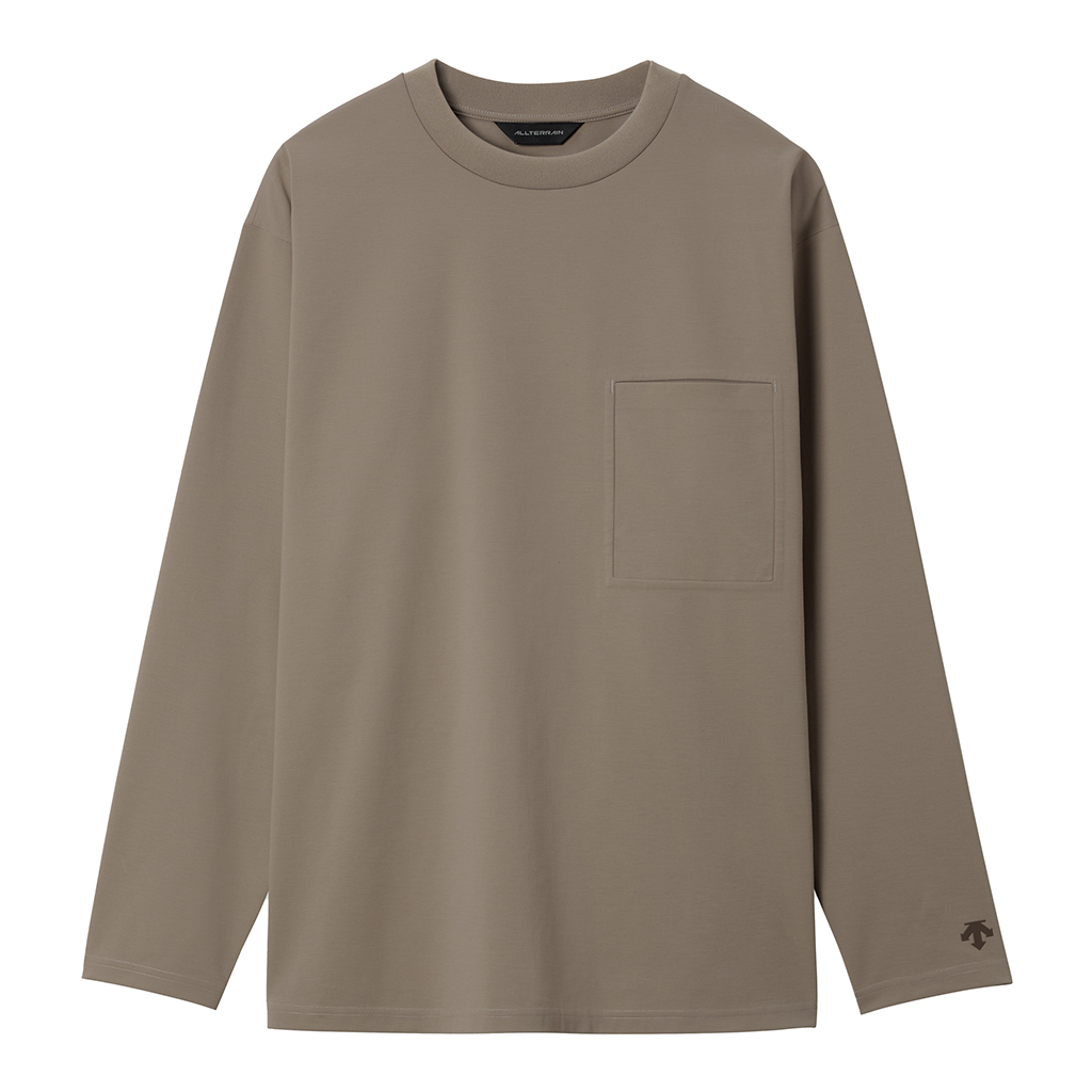 A long sleeve T-shirt with a cotton-like texture, in full-dull micro-spun stretch, quick wicking, quick drying yarn. Ultrasonic welding and heat bonding create a seamless interior and protect the fabric’s natural stretch.The minimalist, streamlined design maximizes comfort.