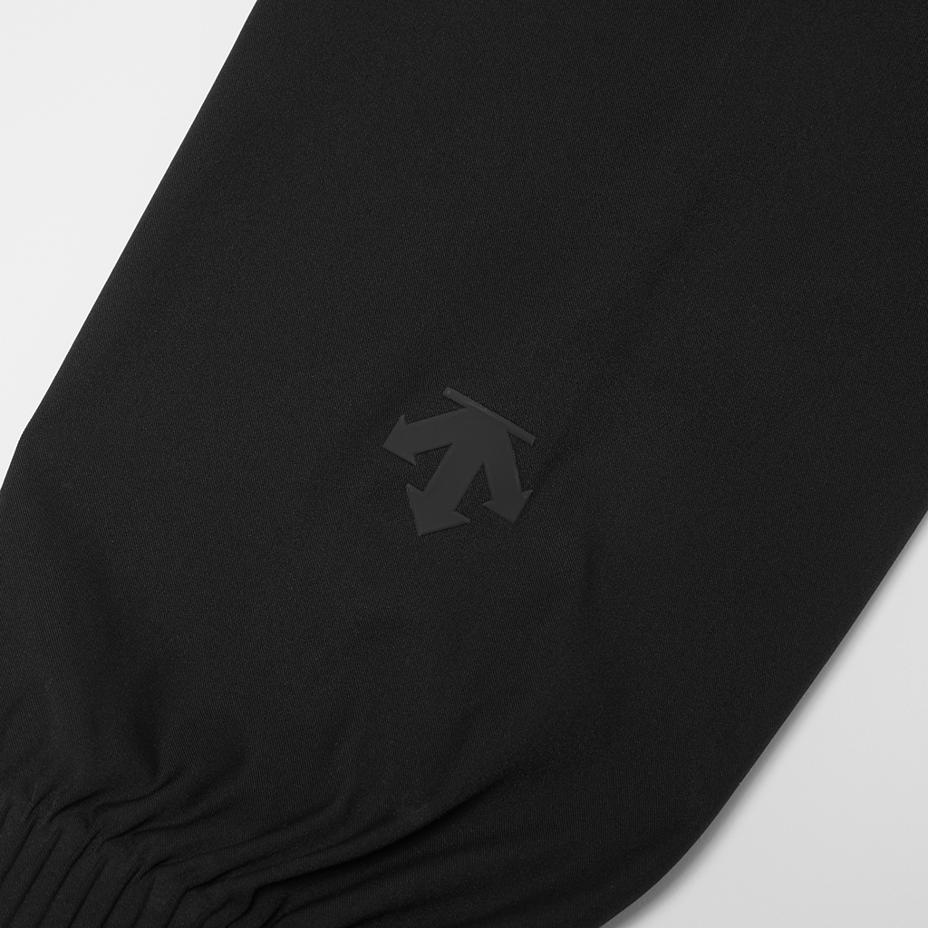 A hybrid knit crew neck in the FUSIONKNIT series with a body mapping motif on the front. Various jacquard patterns have been knitted into a single piece of fabric for temperature regulation and stretchability. The sleeves are in a glossy woven fabric, a hybrid spec adding both durability and a design accent. Descente's unique pattern-making ensures a 3D silhouette and airy comfort. This crew neck combines freedom of movement and comfort in a seamless design using knit and sew manufacturing with ultrasonic welding and heat bonding.