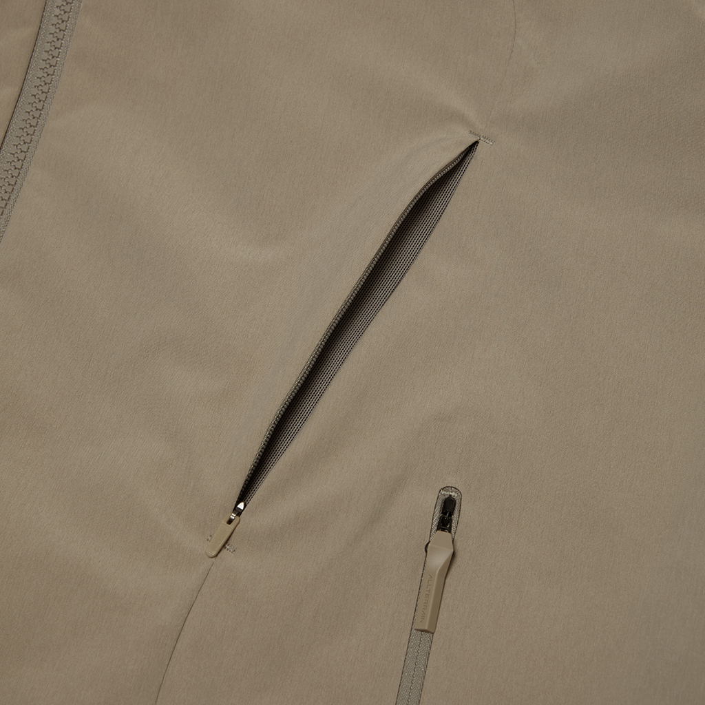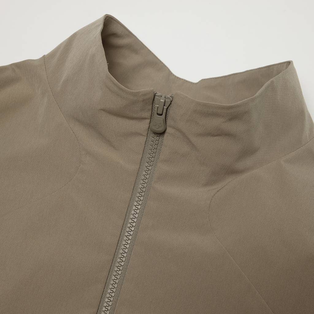 A jacket in a unique fabric using a special yarn processing technique to combine two types of fibers in a dense weave to create texture and water repellency. The lining is in Octa?, with an excellent balance between heat retention and breathability. The integration of mesh and a brushed surface in Octa? prevents sweating and discomfort and ensures the jacket remains breathable and comfortable even during active use. The front panels have concealed zippers with a ventilation function, allowing airflow regulation as needed. Its short, rounded silhouette offers both warmth and style.