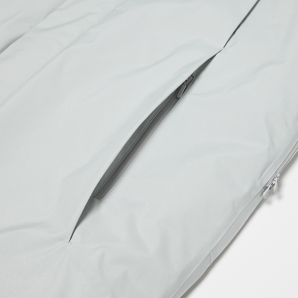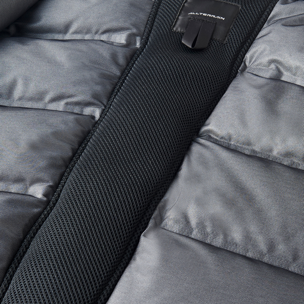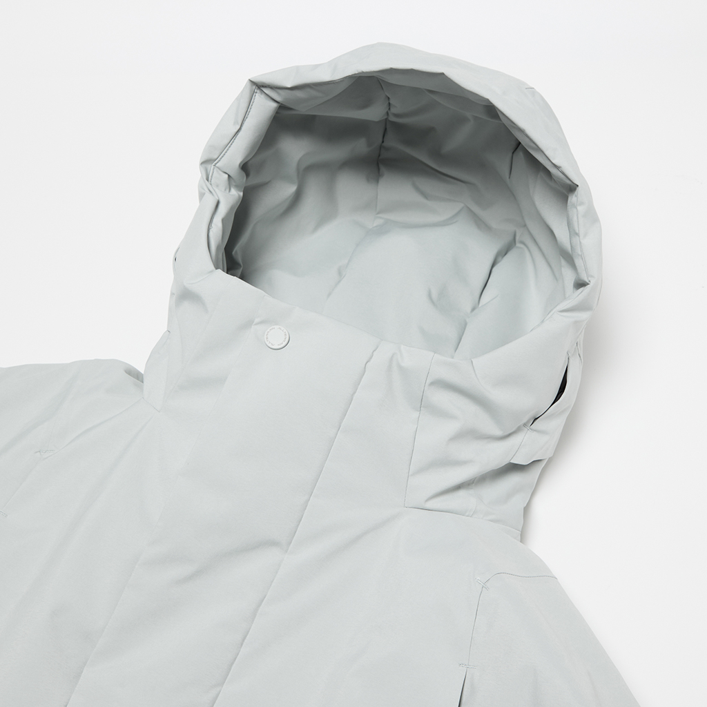 A hybrid insulated coat in WINDSTOPPER? by GORE-TEX LABS. The special breathable structure of the down packs and ventilation systems in the back and sides promote air flow inside so the coat itself seems to breathe, expelling uncomfortable heat and moisture. The lining has Descente’s proprietary HEAT NAVI?, which converts light into heat for optimal warmth in cold environments. This coat is designed to offer the advantages of high levels of windproofing, water resistance and hybrid warmth, from both down and technical insulation.