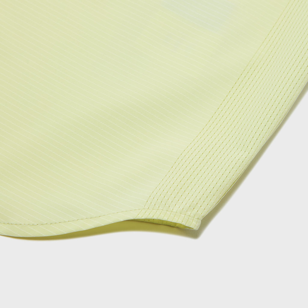 A half-sleeve shirt with excellent breathability and partial mesh zones incorporated into a single piece of fabric. Heat and moisture inside escape through the mesh to maintain a comfortable temperature and humidity level. With excellent stretch and a relaxed, oversized fit, this shirt can be worn alone or as lightweight outerwear.