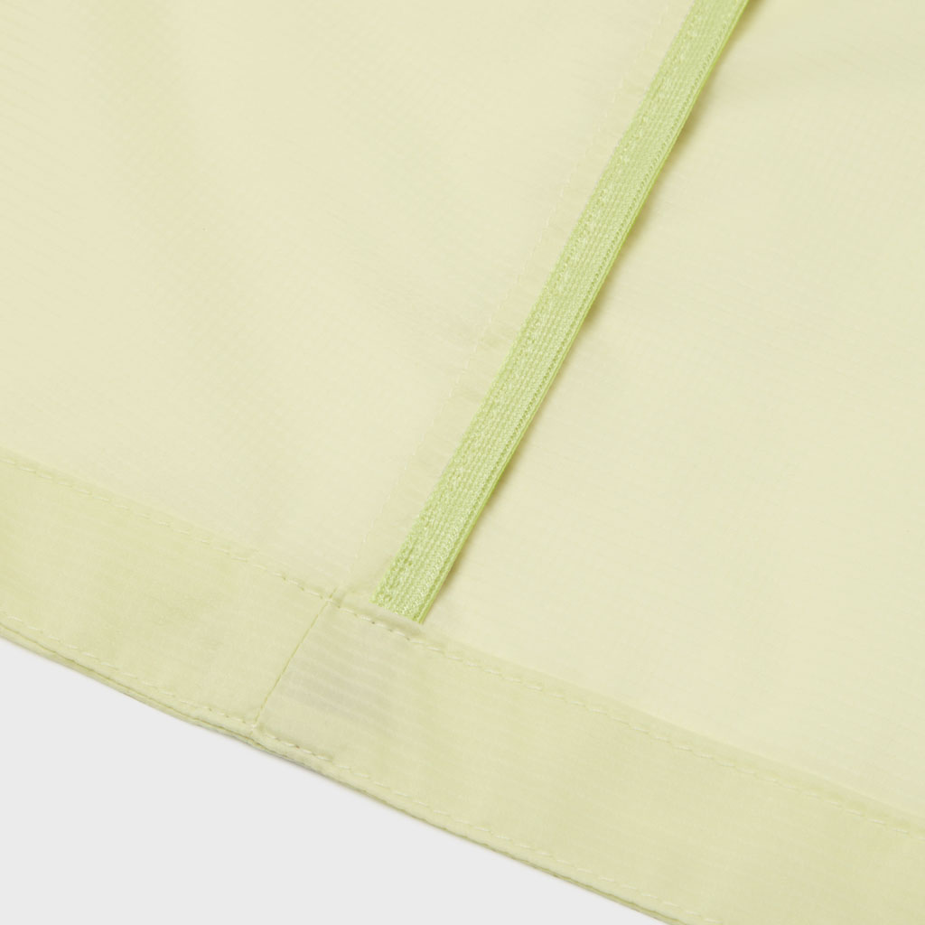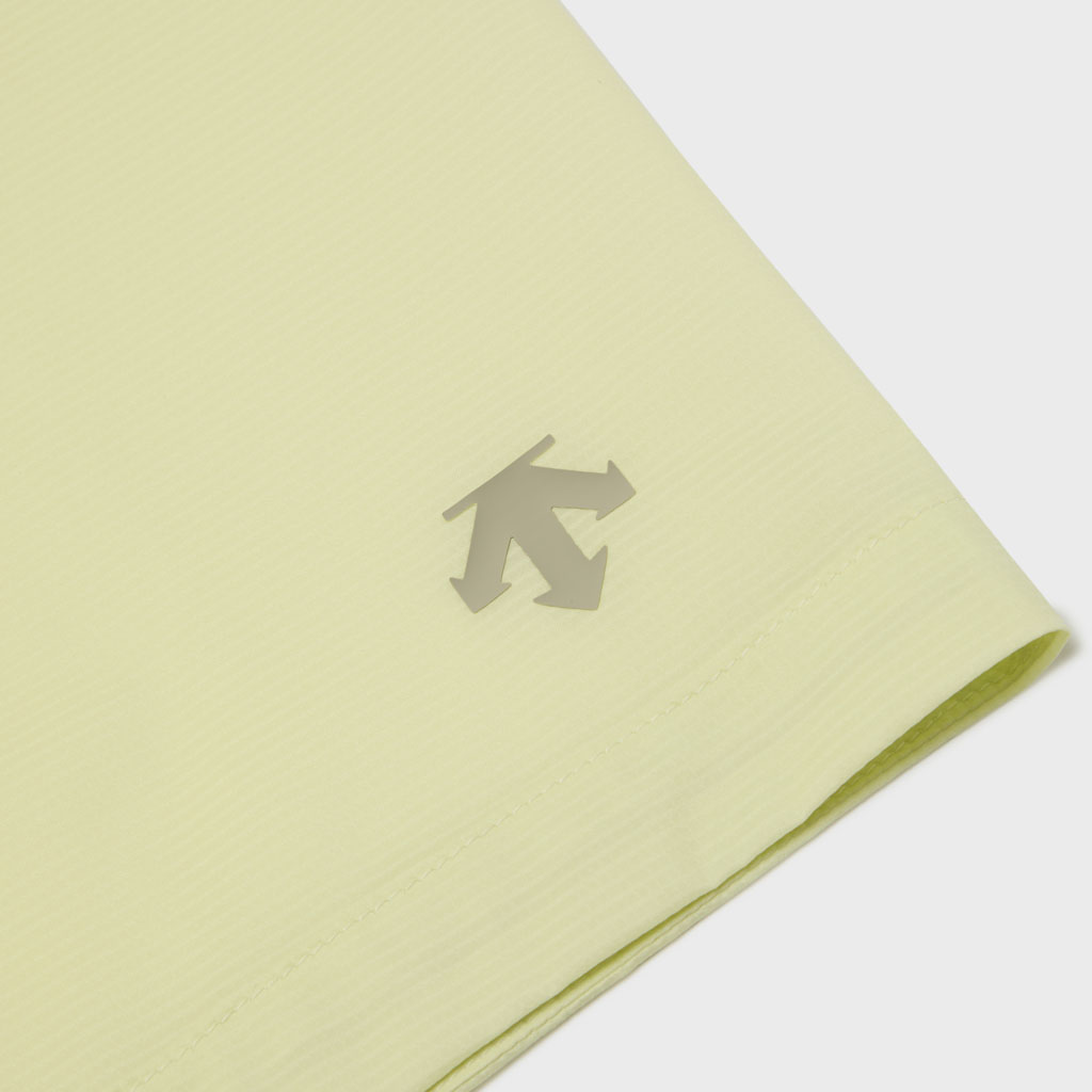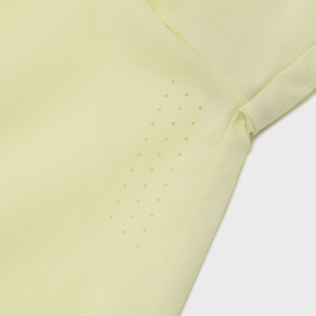 A half-sleeve skipper collar shirt in a sheer fabric with water repellency and breathability. Tucks at the front and back of the waist give a structured look and promote internal airflow. Laser-cut underarm perforations support ventilation and the skipper collar enhances comfort awith a polished, feminine look.