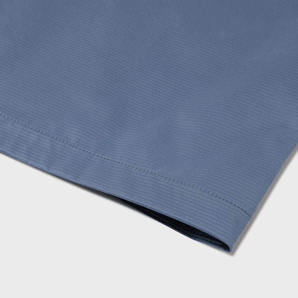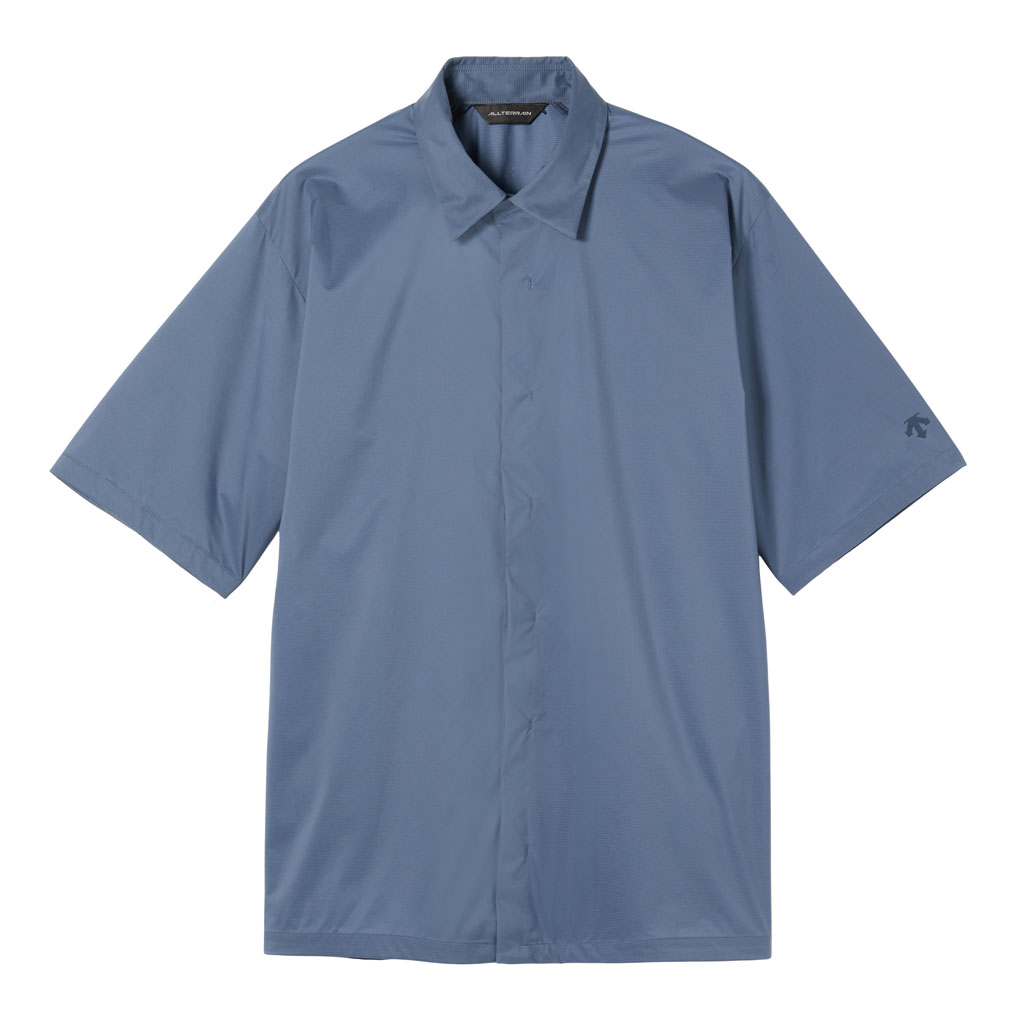 A lightweight, water-repellent half-sleeve shirt with a grid-like inner surface texture offering a dry, comfortable feel. Ventilation holes in the centre of the back minimize moisture buildup. Details are minimized to ensure lightness, resulting in a clean, minimal silhouette versatile for spring and summer.