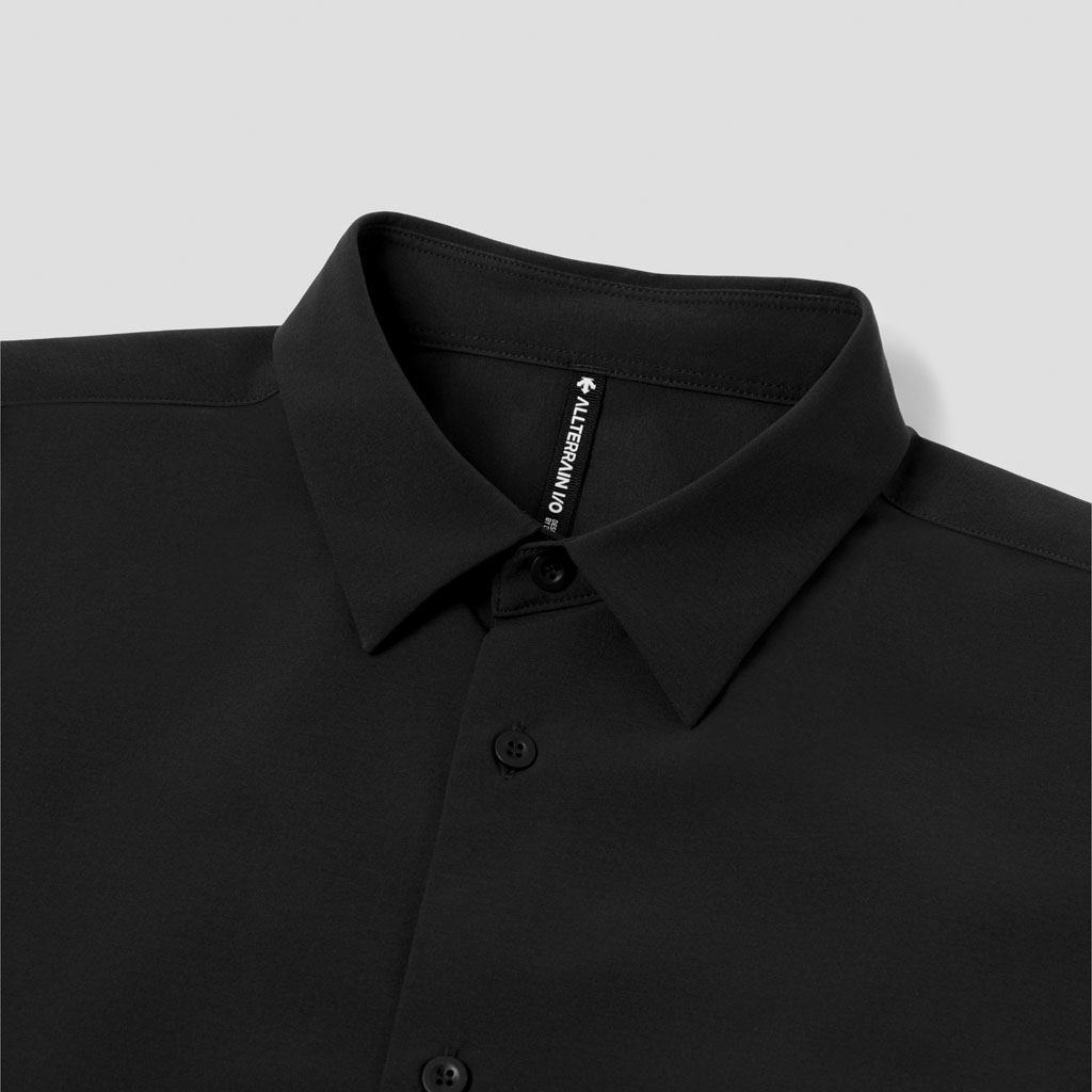 A half-sleeve shirt in soft touch, stretchy Solotex® that moves fluidly with the body. It has the appearance of a basic regular collar shirt but the added water-repellent functionality protects against sudden weather changes for all-day comfort. A highly versatile high performance shirt.