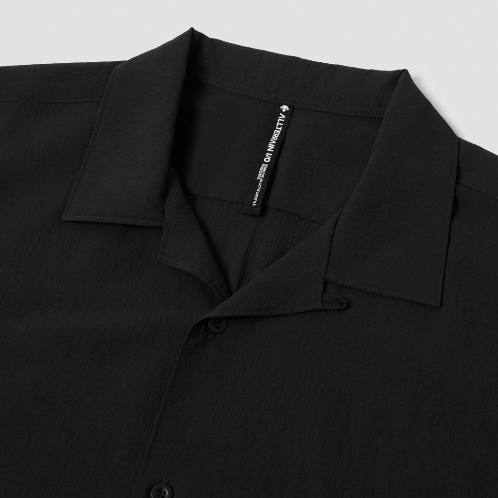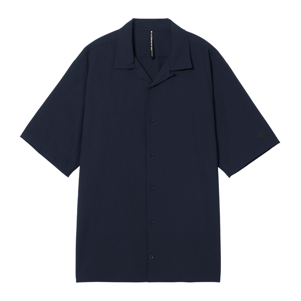 A half-sleeve, open collar shirt in lightweight, stretch nylon. Its stretch enables freedom of movement and a water-repellent finish protects against sudden rain making it suitable for a wide variety of activities. The lightweight, airy fabric reduces skin discomfort.