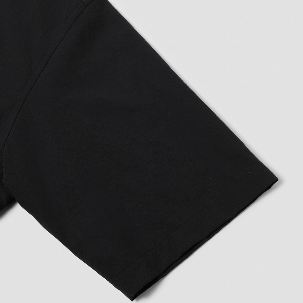 A half-sleeve, open collar shirt in lightweight, stretch nylon. Its stretch enables freedom of movement and a water-repellent finish protects against sudden rain making it suitable for a wide variety of activities. The lightweight, airy fabric reduces skin discomfort.