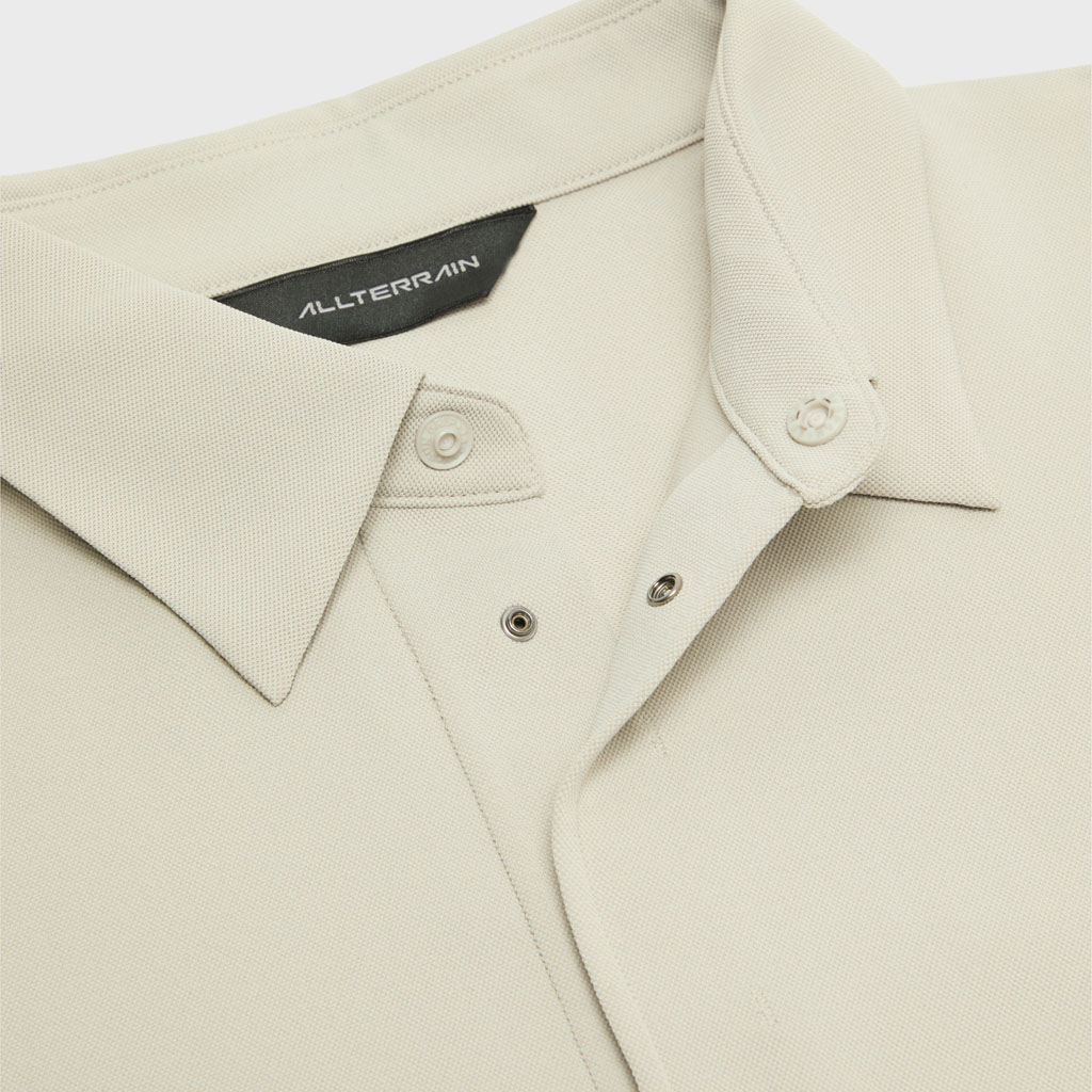 A technical polo shirt designed for mid-summer in a piqué fabric that keeps the skin dry. The front is minimalist, with a no-placket look made possible with DESCENTE’s bonding technology.