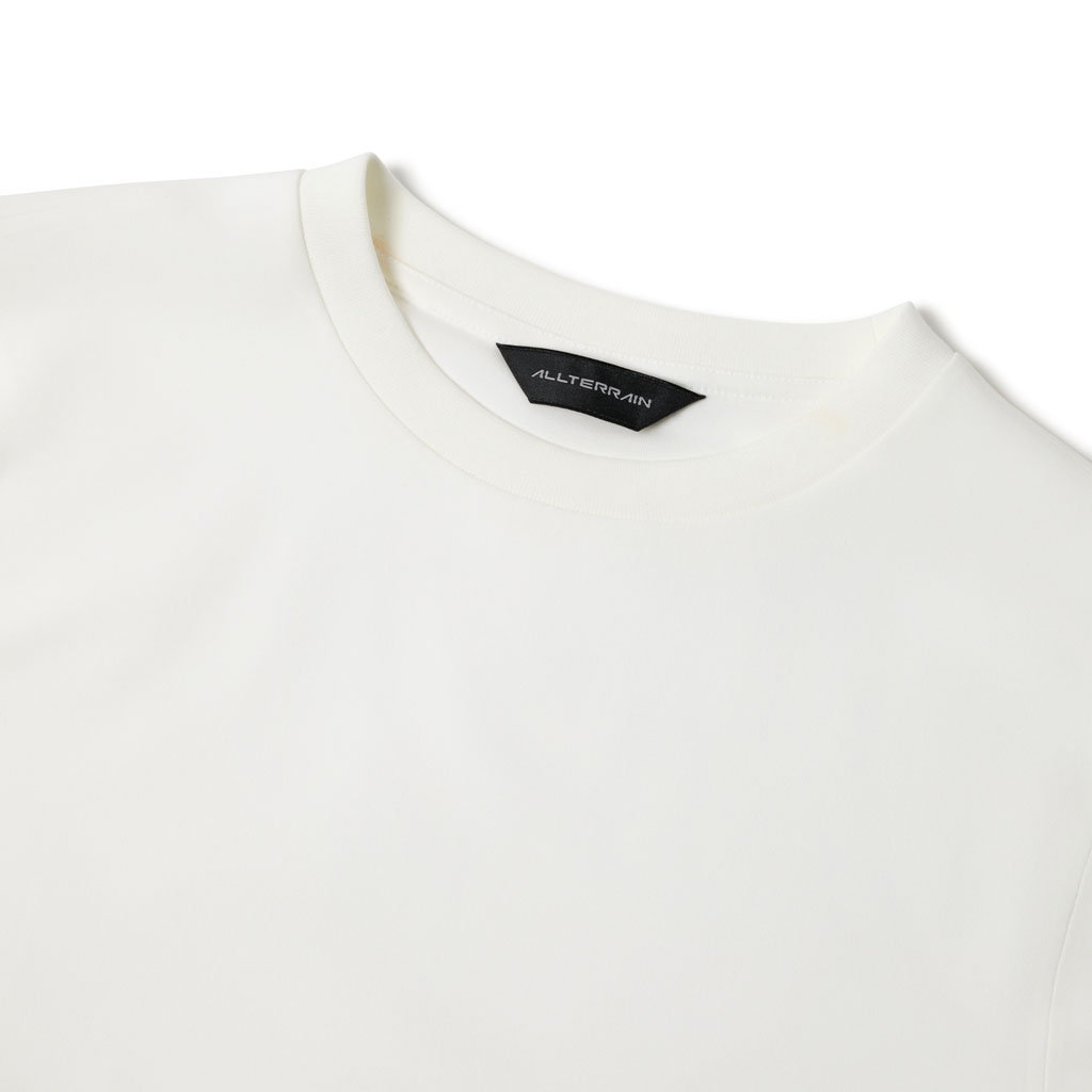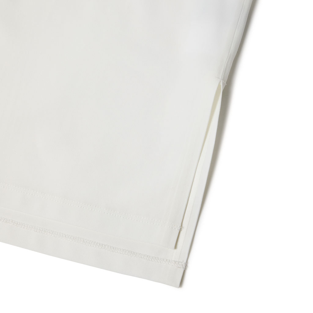 A T-shirt in a fabric with excellent UPF, water absorption, quick wicking and quick drying properties. Seamless on the reverse for a soft skin touch. The fabric’s natural stretch is utilized to create a minimalist, streamlined design that prioritizes comfort. It can be paired with the skirt in the same fabric for a sophisticated look. The relaxed fit allows for a comfortable feel while ensuring a feminine silhouette. Side slits at the hem add a natural, clean finish. Whether worn as a set or separately, this versatile piece expands styling options.