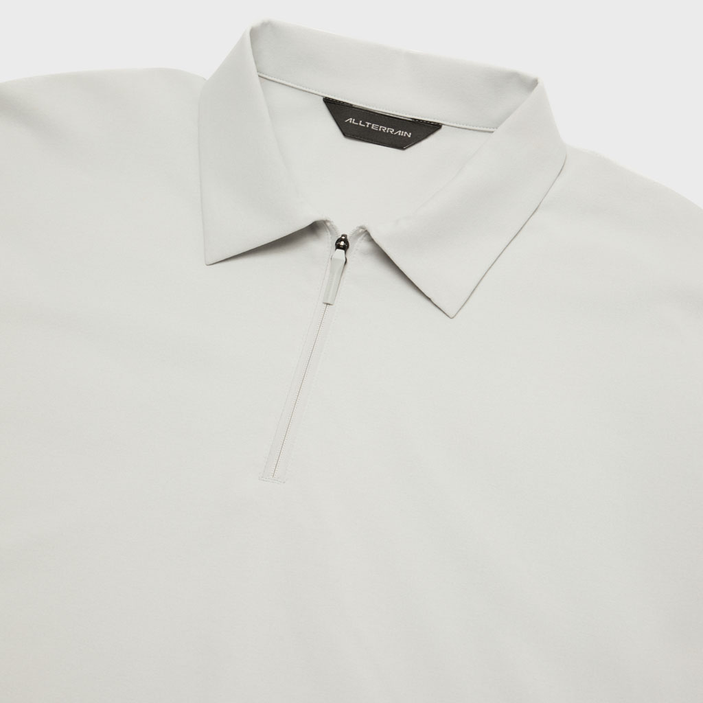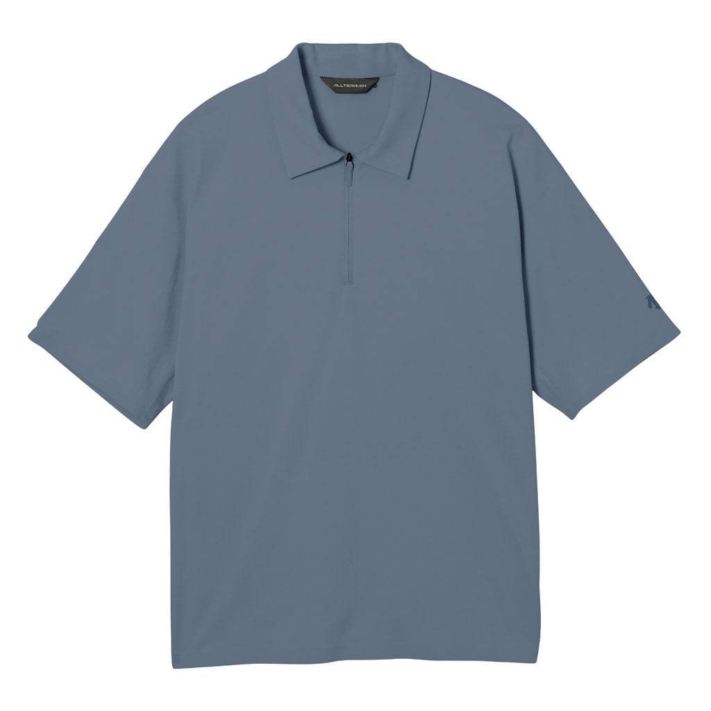 A technical T-shirt designed for mid-summer comfort. It has a half zip front for ease of wear and adjustable ventilation aroundd the neck. Ultrasonic processing on the inside creates a sporty, technical look.