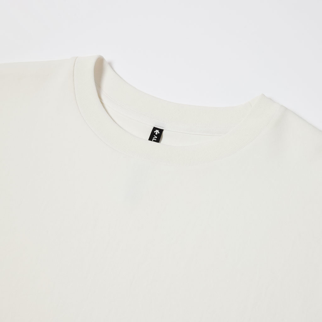 A half-sleeve T-shirt in a lightweight, stretch, UV-shielding fabric using matte full-dull yarn to reduce transparency. Excellent water absorption improves comfort across seasons. Suitable for both business and casual wear.