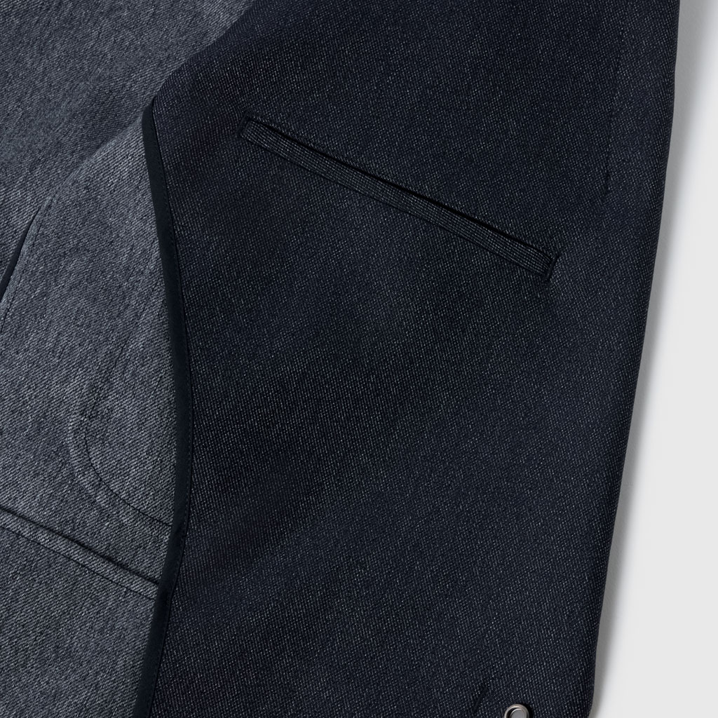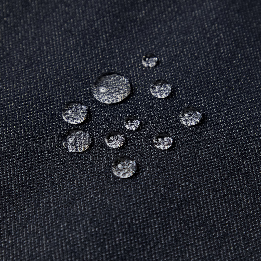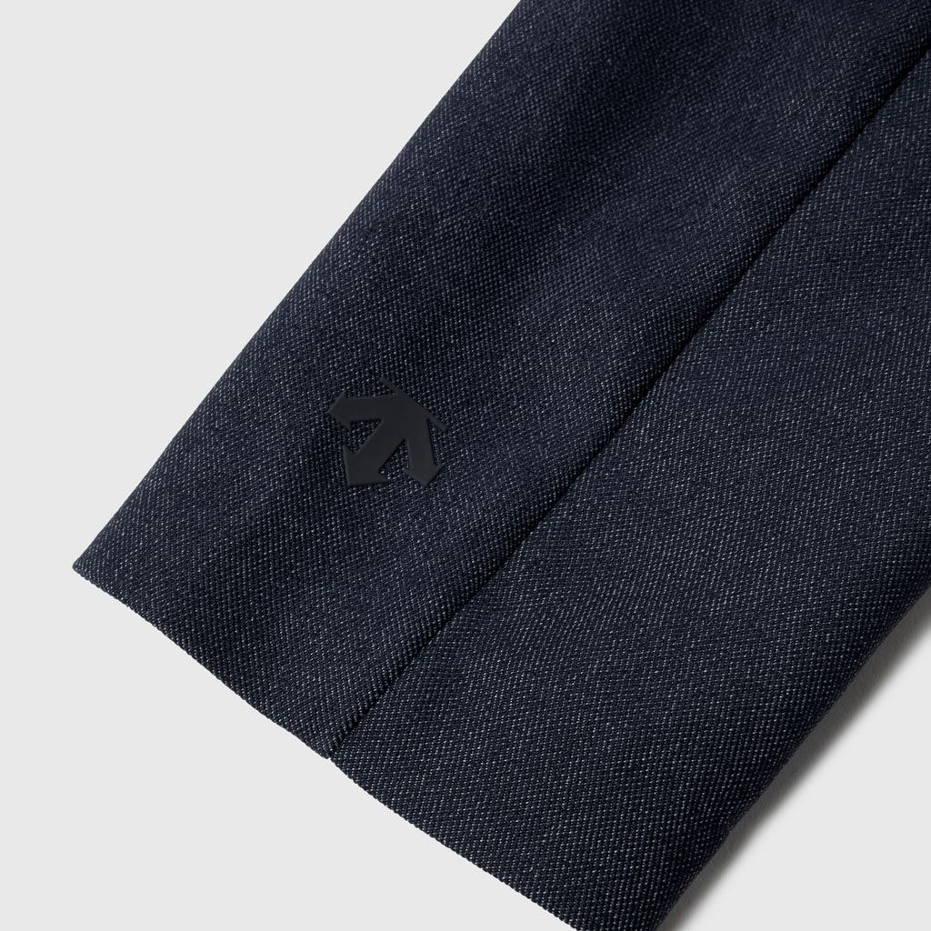 A tailored jacket in a 100% polyester denim-like material. Unlike traditional denim which is a weave of navy and white yarns, this is woven with navy and heathered yarns for a more refined appearance. The added water-repellent finish protects against sudden rain and ensures all day comfort and great versatility.