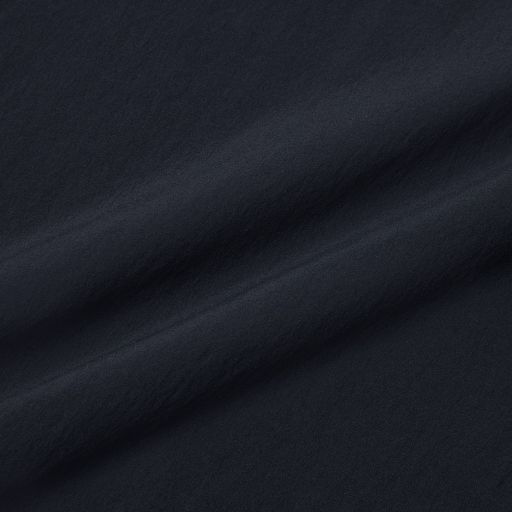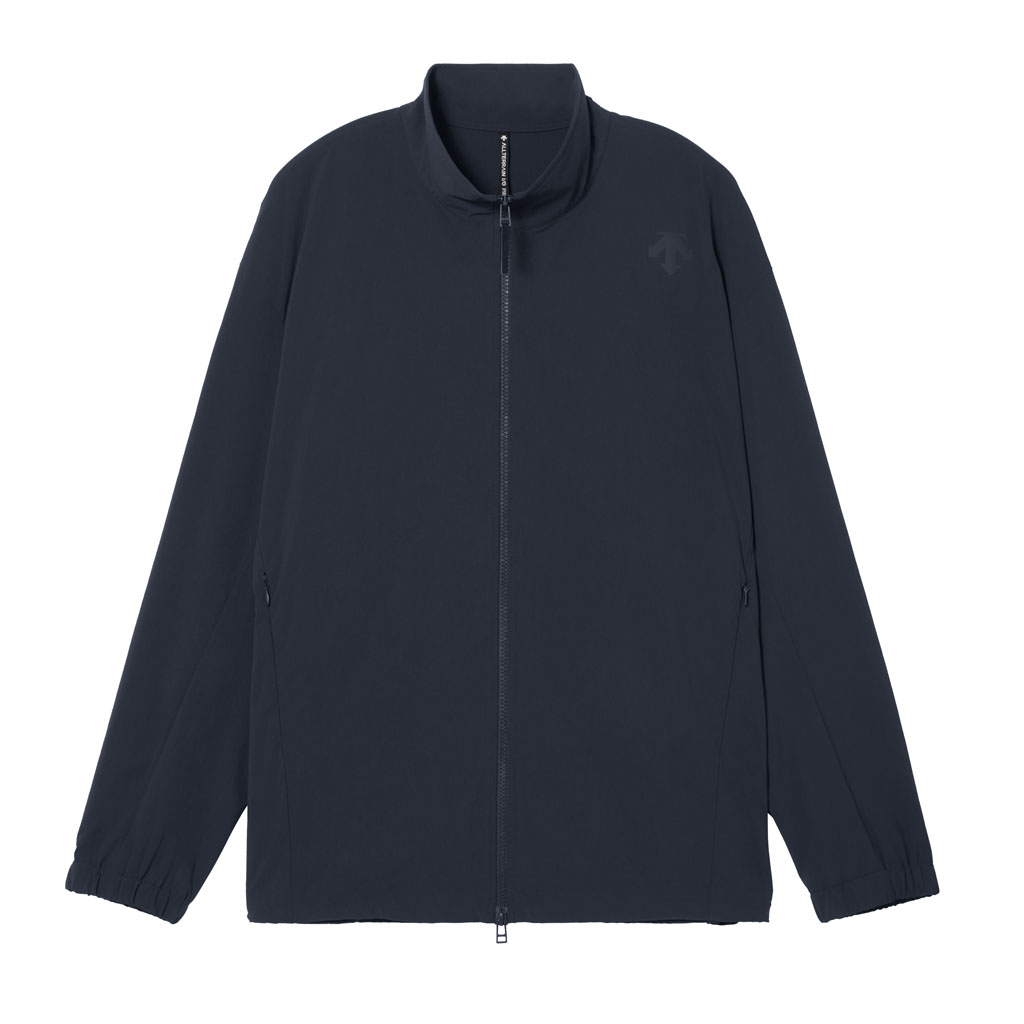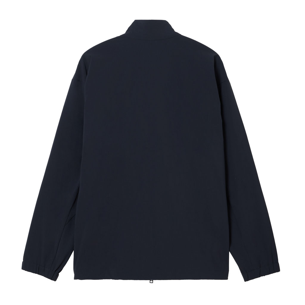A lightweight track jacket in 4 way stretch, water repellent, recycled nylon. Ideal for everyday use with pattern engineering that maximizes freedom of movement. A slightly loose silhouette with elasticized hem and cuffs offers a comfortable fit. The design is minimalist but the addition of a large chest logo gives it modern sportswear appeal. It can be paired with the TRACK series pants in the same fabric.