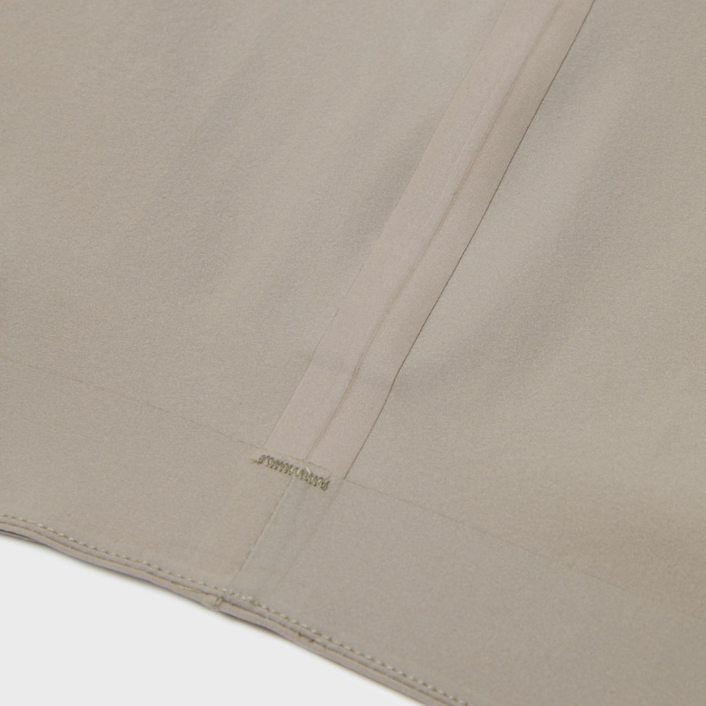 A sotf long sleeve shirt with excellent stretch and water repellency. The relaxed silhouette creates an airy, comfortable fit. Ultrasonic welding and heat bonding create a seamless interior and ensure the stretch is unimpeded. Its minimalist aesthetic offers styling options for both business and casual settings.