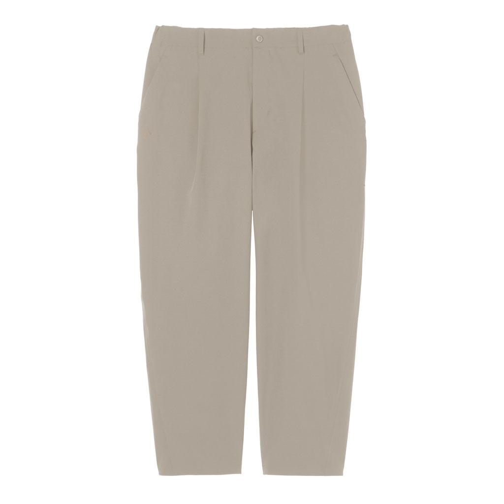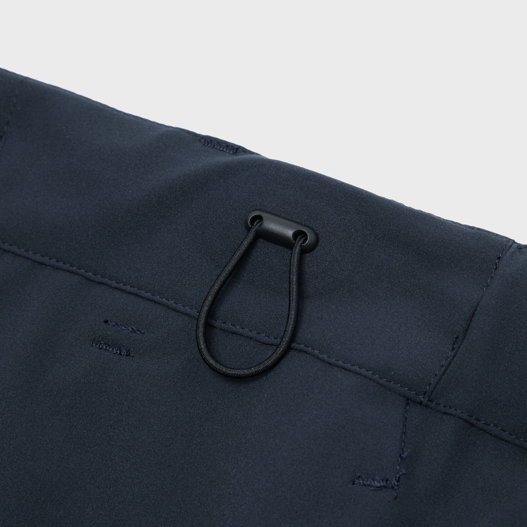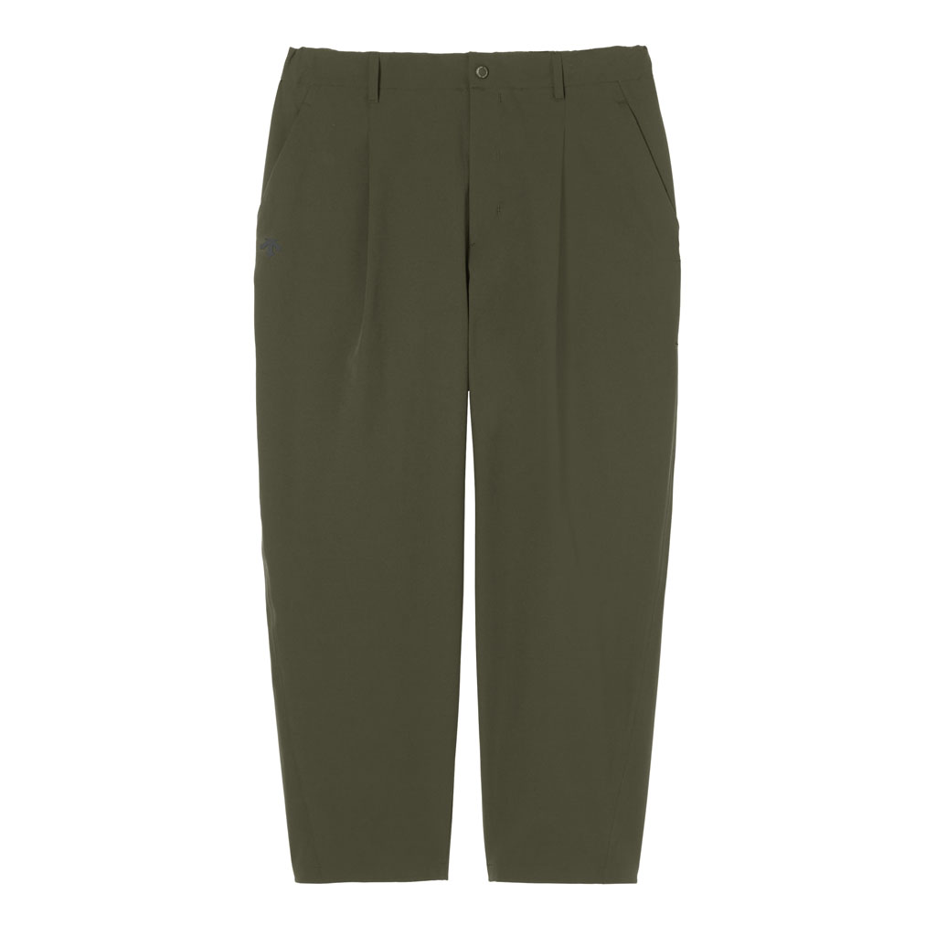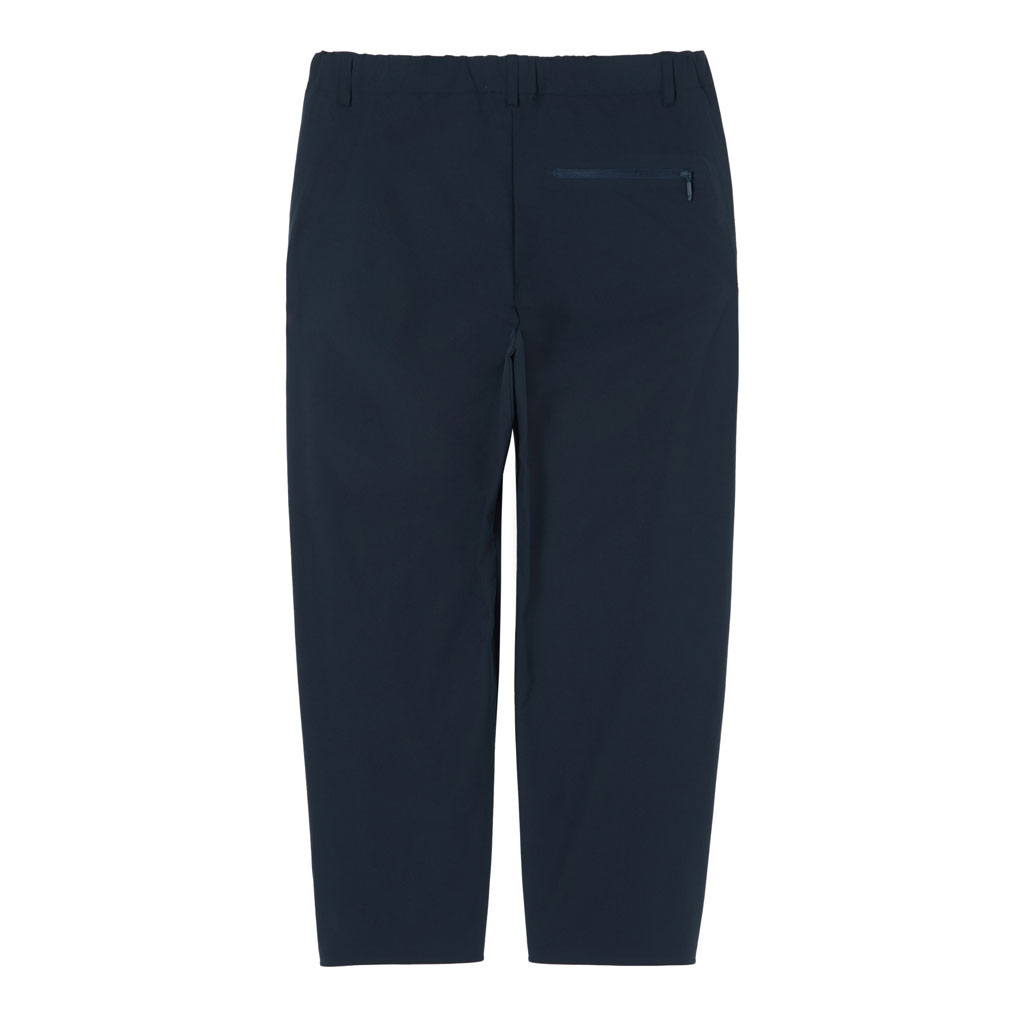 Soft, tapered pants with excellent stretch and water repellency. The relaxed silhouette creates an airy, comfortable fit. Ultrasonic welding and heat bonding create a seamless interior and ensure the stretch is unimpeded. The minimalist aesthetic offers styling options for both business and casual settings.