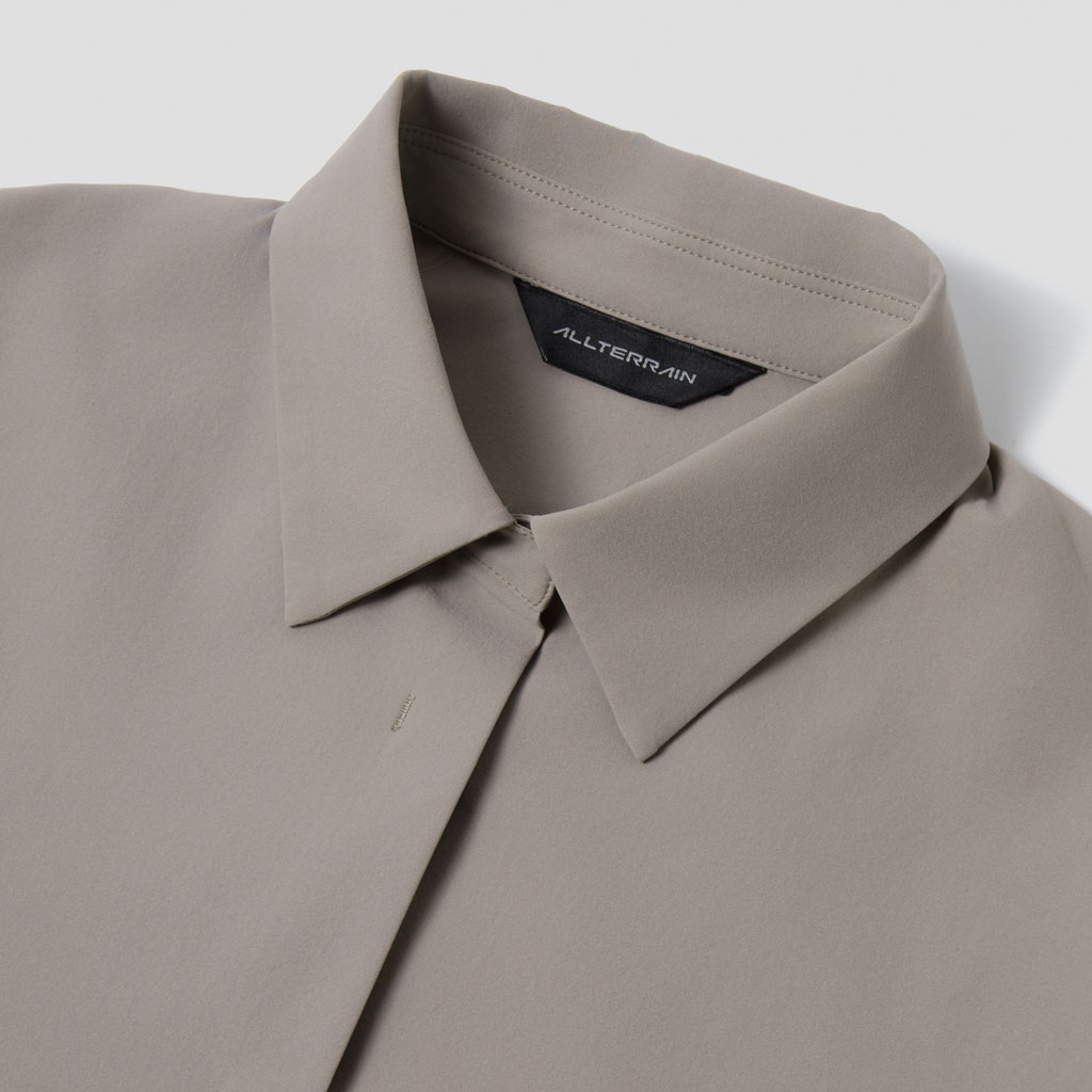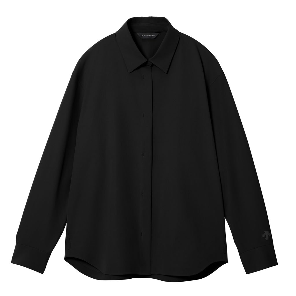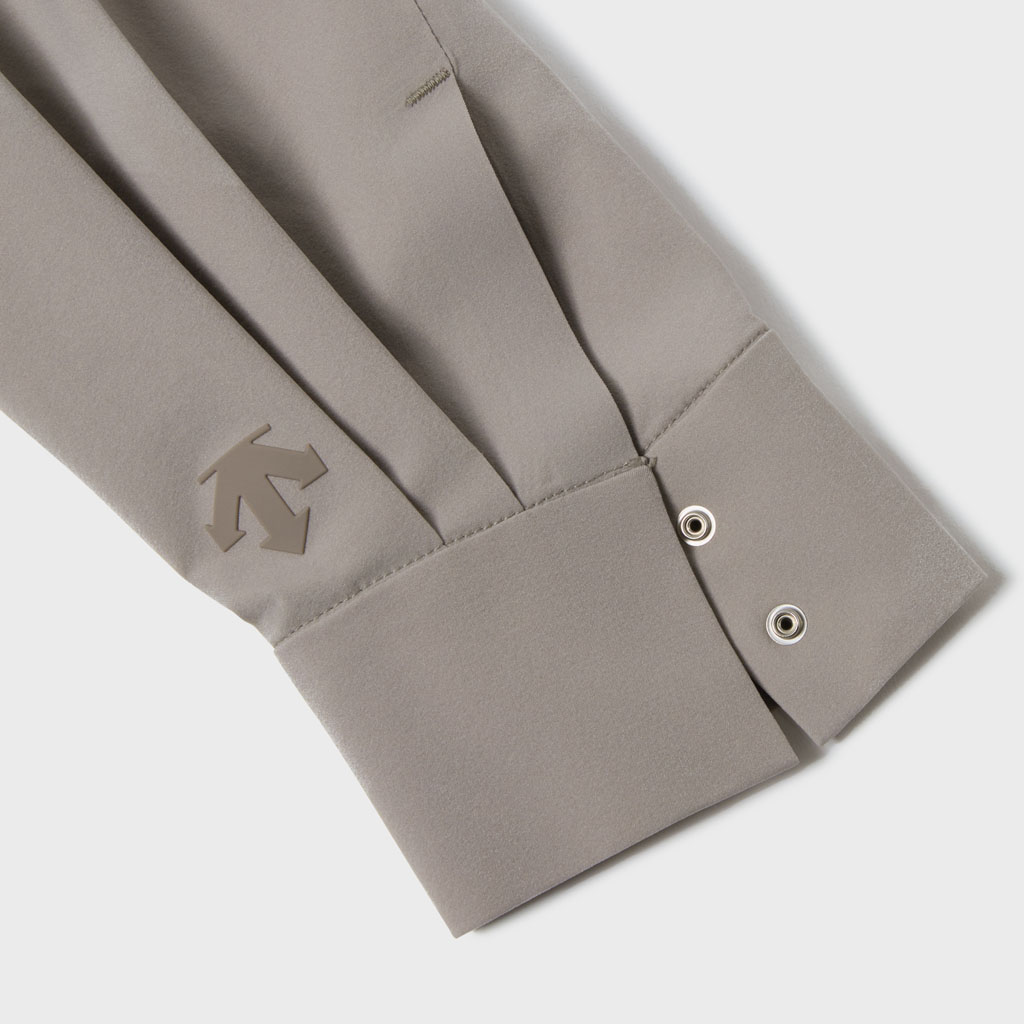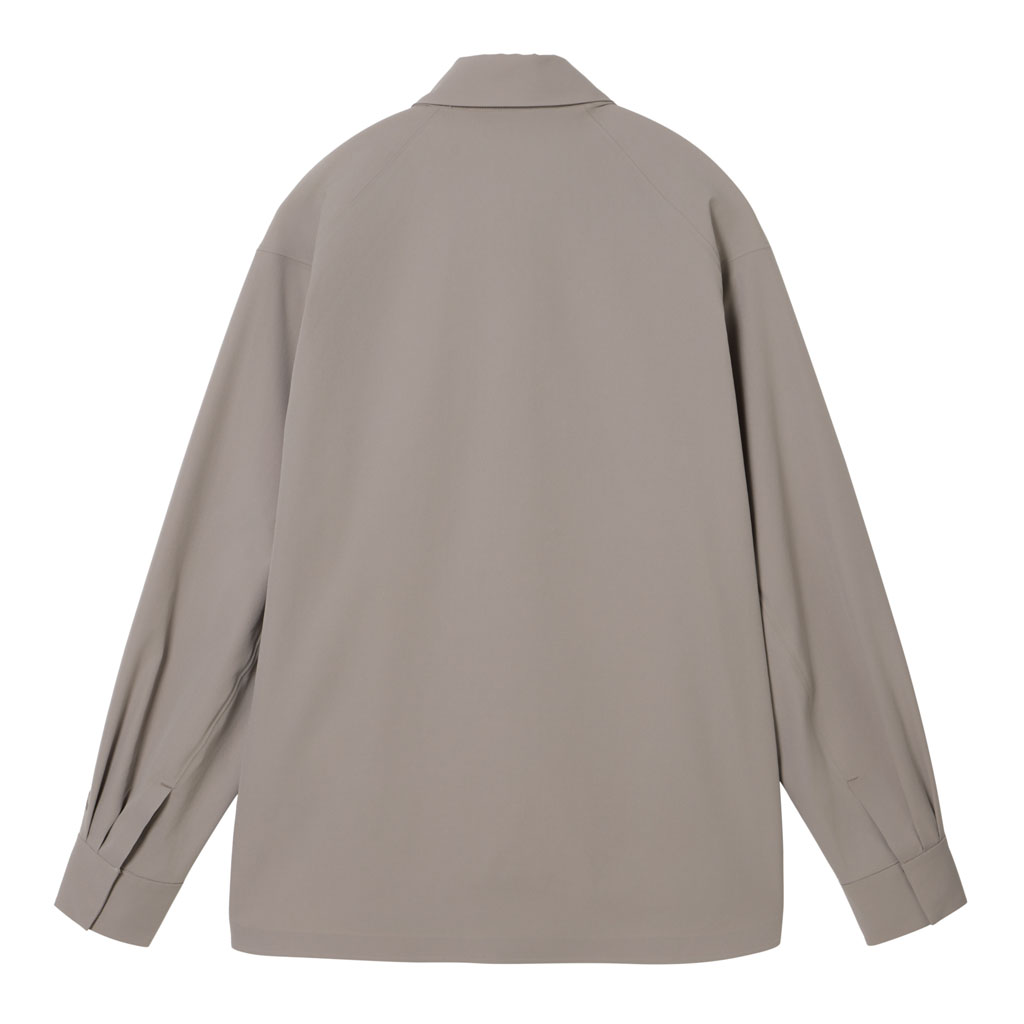 A soft long sleeve shirt with excellent stretch and water repellency. The relaxed silhouette creates an airy, comfortable fit. Ultrasonic welding and heat bonding create a seamless interior and ensure the stretch is unimpeded. Its minimalist aesthetic offers styling options for both business and casual settings.