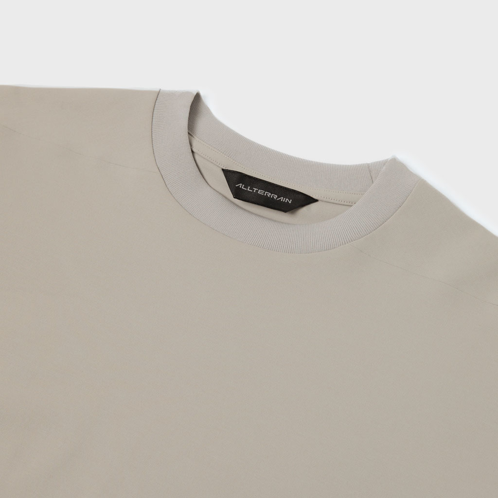 A T-shirt with a cotton-like texture, in full-dull micro-spun stretch, quick wicking, quick drying yarn. The inside is free of sewn seams and the fabric’s natural stretch is protected.This minimalist, streamlined design maximizes comfort.