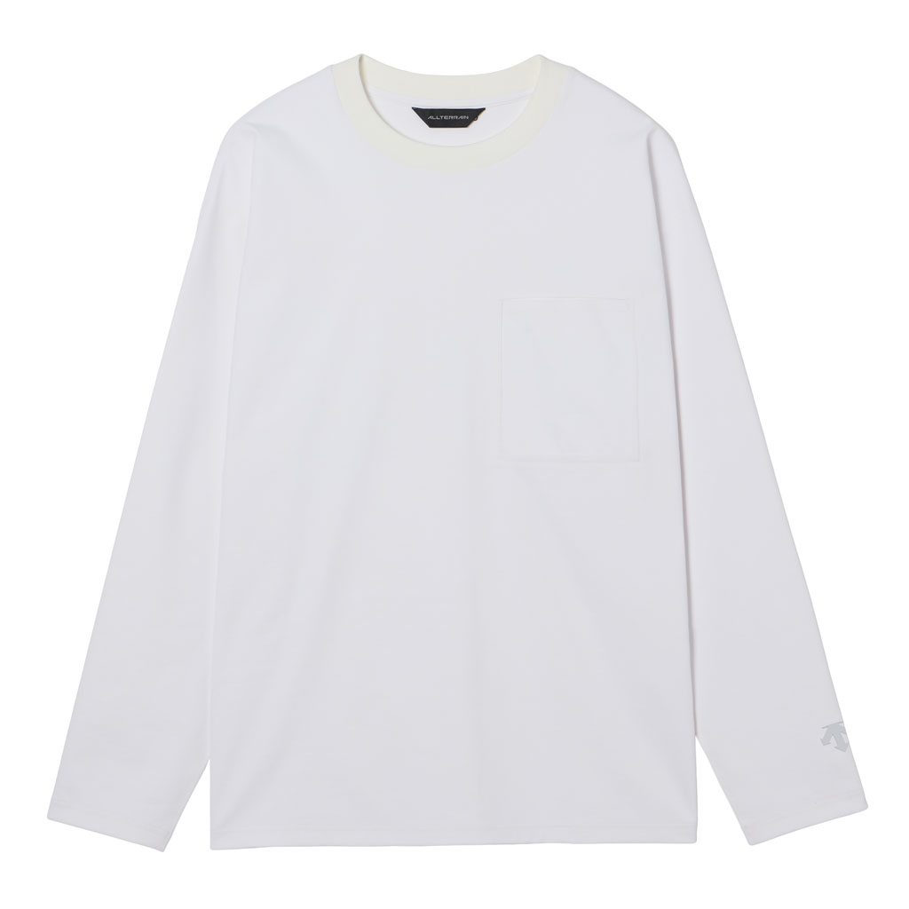A long sleeve T-shirt with a cotton-like texture, in full-dull micro-spun stretch, quick wicking, quick drying yarn. Ultrasonic welding and heat bonding create a seamless interior and protect the fabric’s natural stretch.The minimalist, streamlined design maximizes comfort.